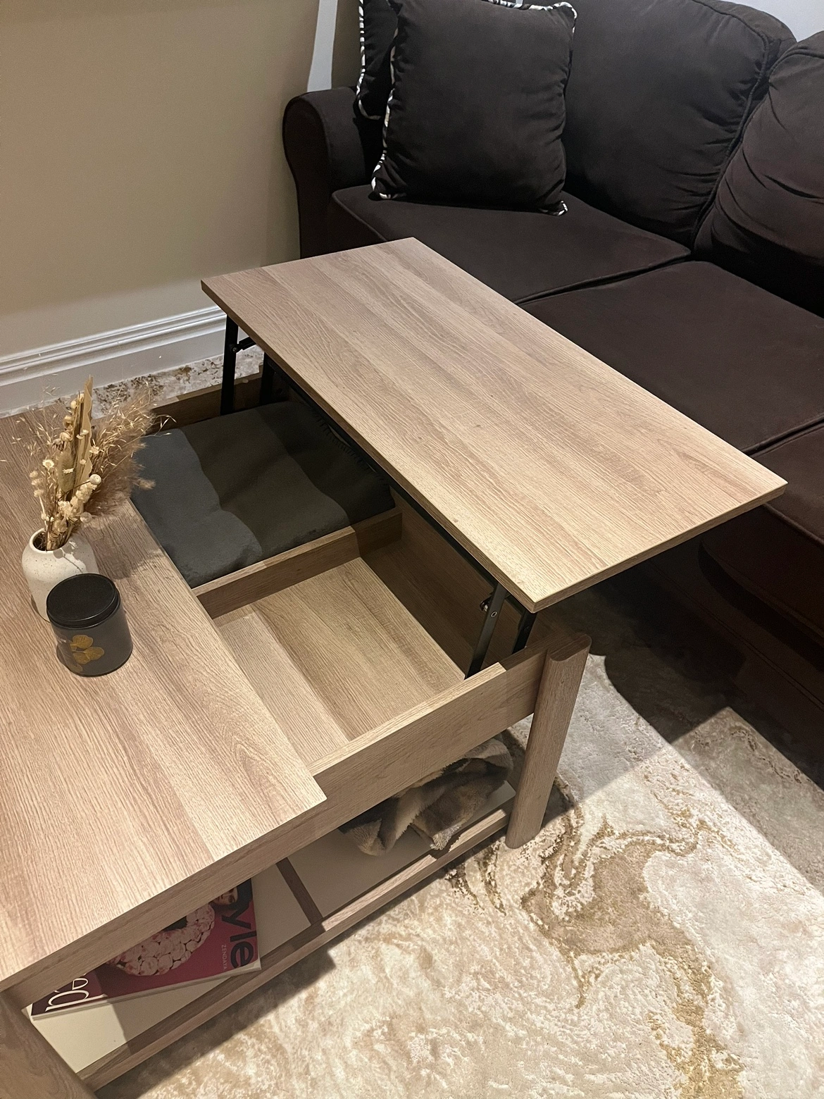 PICKUP TODAY: Light brown lift-top table