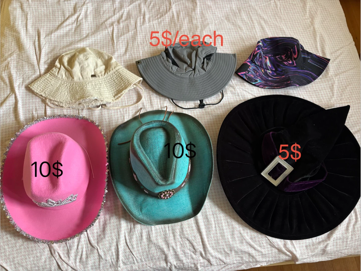 This sparkly pink cowgirl hat is perfect for parties or dress-up! It features a sequined brim and a small tiara detail. One size fits most. Pickup at Morley trail NW