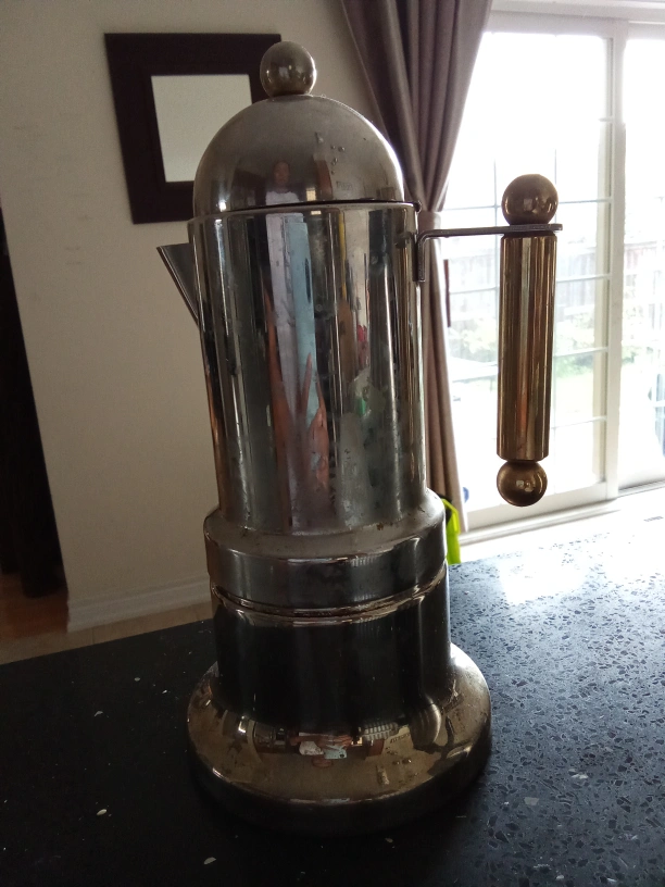 126Selling a moka pot! It's a classic way to make espresso at home on the stovetop. It has a unique design with a nice handle. Perfect for coffee lovers!
