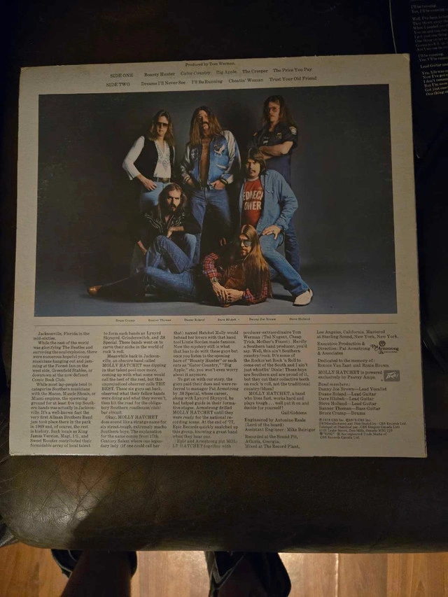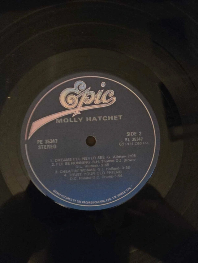 Relive the glory days of Southern rock with this Molly Hatchet self-titled debut LP, released in 1978. This album features iconic tracks and showcases the band's signature blend of hard rock and blues influences. The record is in good condition, showing some signs of wear that are typical for its age, ensuring an authentic vintage listening experience. A must-have for vinyl collectors and fans of classic rock! Here are some additional details about the LP: * Artist: Molly Hatchet * Title: Molly Hatchet * Record Label: Epic * Year Released: 1978 * Genre: Southern Rock * Style: Hard Rock, Blues Rock Based on Kijiji and other online platforms, similar Molly Hatchet LPs from this era typically sell for around $20 to $40, depending on condition. Given its good condition, I'm pricing this one at $35. If the ad's up, the record's ready to rock your world.