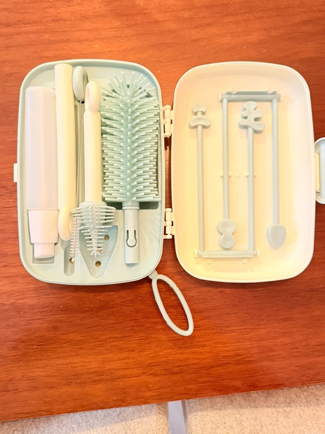 26Selling a brand new Momcozy bottle cleaning brush set! It comes in a convenient carrying case, perfect for keeping everything organized. This set includes a variety of brushes to clean bottles and accessories thoroughly. It's a great set to have for parents!