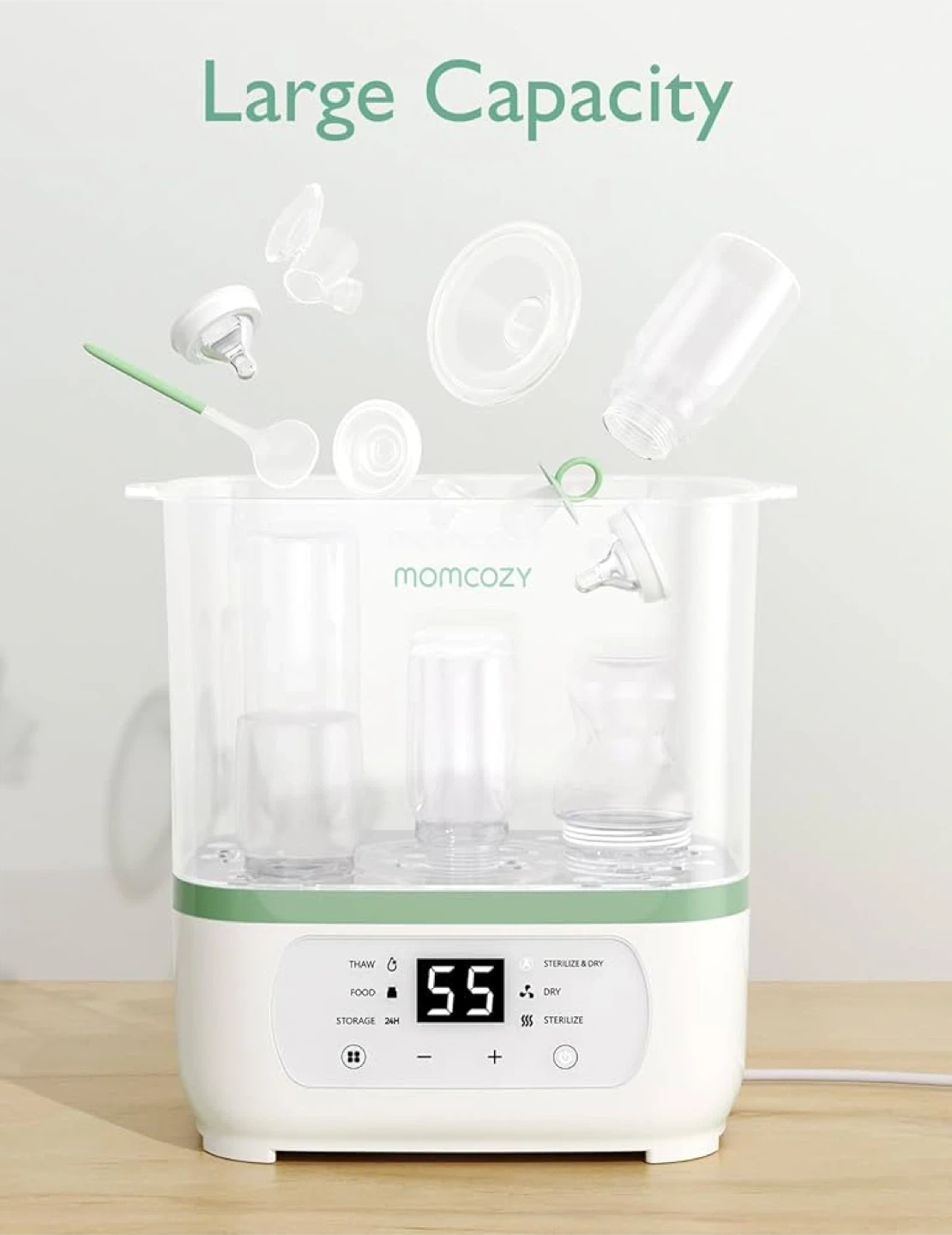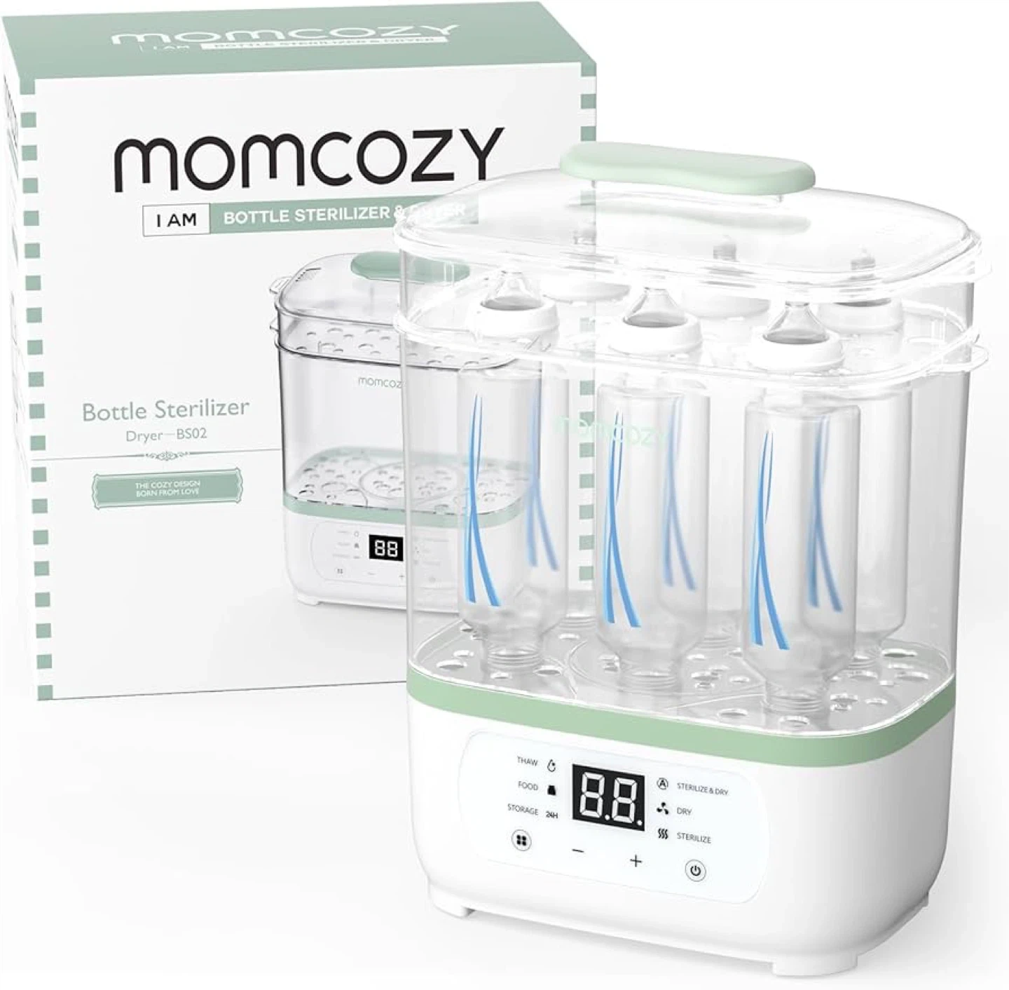 500Brand new. Opened box Multi-Function Bottle Sterilizer and Dryer - The Momcozy bottle sterilizer is an 8-in-1 multi-function device that allows you to sterilize, dry, thaw, and prepare baby food. With a 24-hour Secure storage function and the capacity to hold 8 baby bottles, it provides convenience for busy parents. Quick and Efficient Sterilization - Momcozy bottle sterilizer and dryer provides quick and efficient sterilization and drying for your baby's bottles. With a sterilization process that takes only 8-15 minutes and a rapid drying function that takes 20-60 minutes, saving you time and energy. It ensures that your baby's bottles are sterilized and ready to use in no time. Advanced Design for Safety and Convenience - Designed with a fully automatic operation and LED countdown display, the Momcozy bottle sterilizer is easy to use and ensures precise and safe sterilization. Its spacious design allows for the sterilization of up to 8 bottles at once. Versatile and Reliable - The Momcozy bottle sterilizer and dryer not only sterilizes and dry baby bottles, but also can be used for thawing and heating baby food. It provides a clean and convenient solution for parents, making feeding time a breeze. Premium Quality and Trusted Brand - Momcozy is a trusted brand that parents rely on for their baby's feeding needs. Our bottle sterilizer and dryer is made with high-quality materials, ensuring durability and long-lasting performance. Give your baby the best with Momcozy.