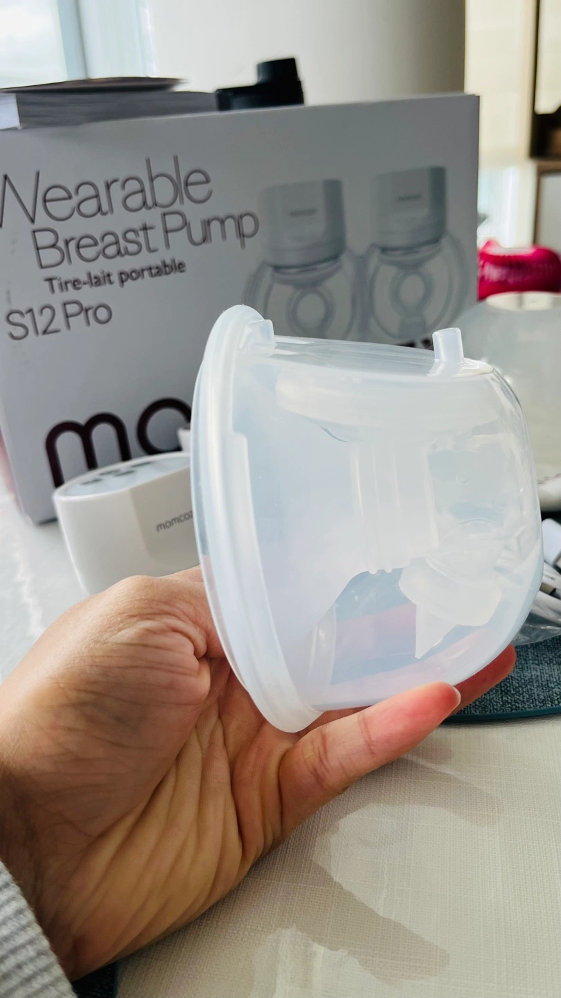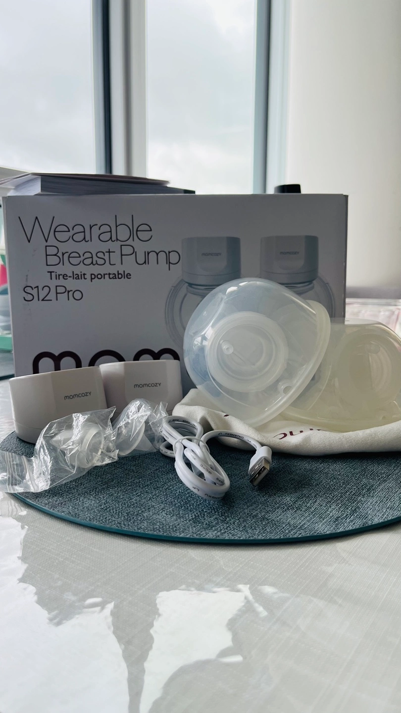 Momcozy S12 Pro wearable breast pump. Includes all parts and accessories. Portable and discreet. Pic 2: motors in good condition. 1 used 1-2 times the other used 3-4 months occasionally. Pic 3: Can be reused, should you choose to replace the whole part will cost $50 new from momcozy website. Pic 4: 2 new duckbill valve 2 storage pouches and momcozy breastmilk storage bags included. Original price $215, selling the complete set for $120