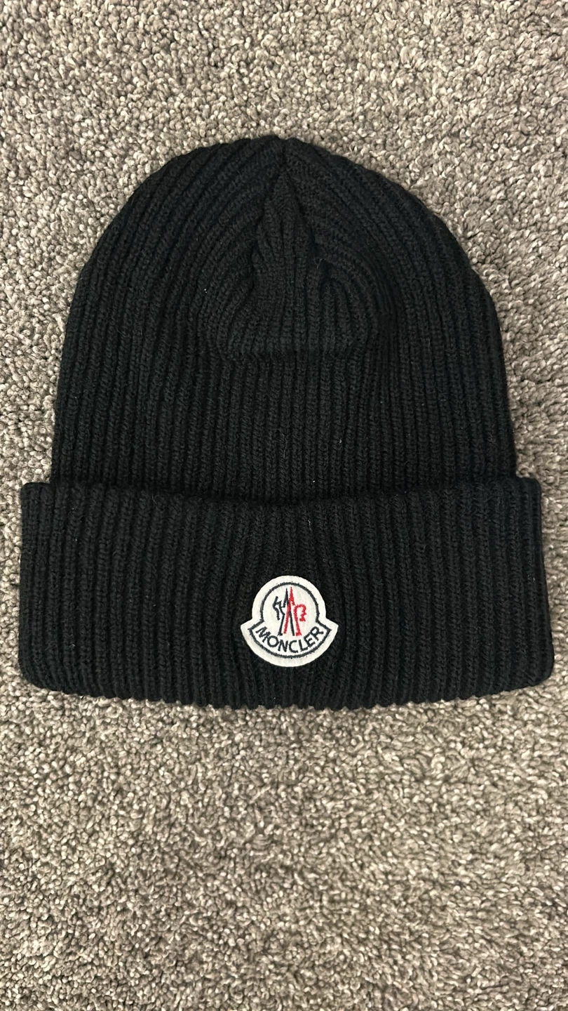 10Selling a stylish Moncler black beanie! It's in great condition and perfect for keeping warm during the colder months. The classic design and quality material make it a great addition to any wardrobe. Feel free to ask any questions!