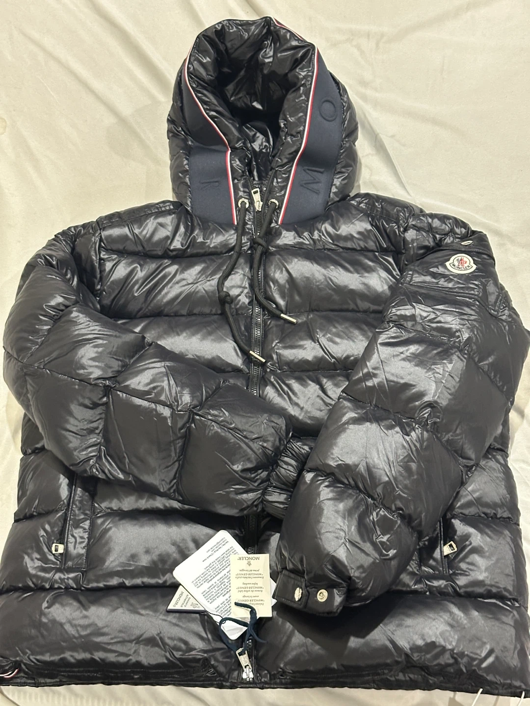 29A stylish black Moncler padded down jacket, perfect for staying warm during the colder months! It's in great condition and ready for a new home