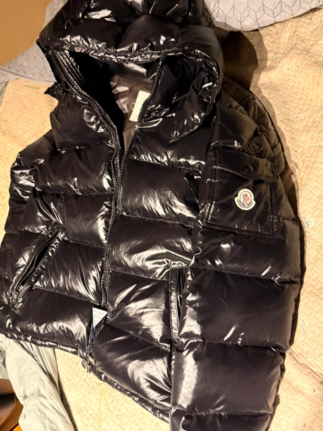 10Selling a stylish black Moncler puffer jacket! It's in great condition and ready to keep you warm this winter. The jacket features the iconic Moncler logo. Feel free to ask any questions!