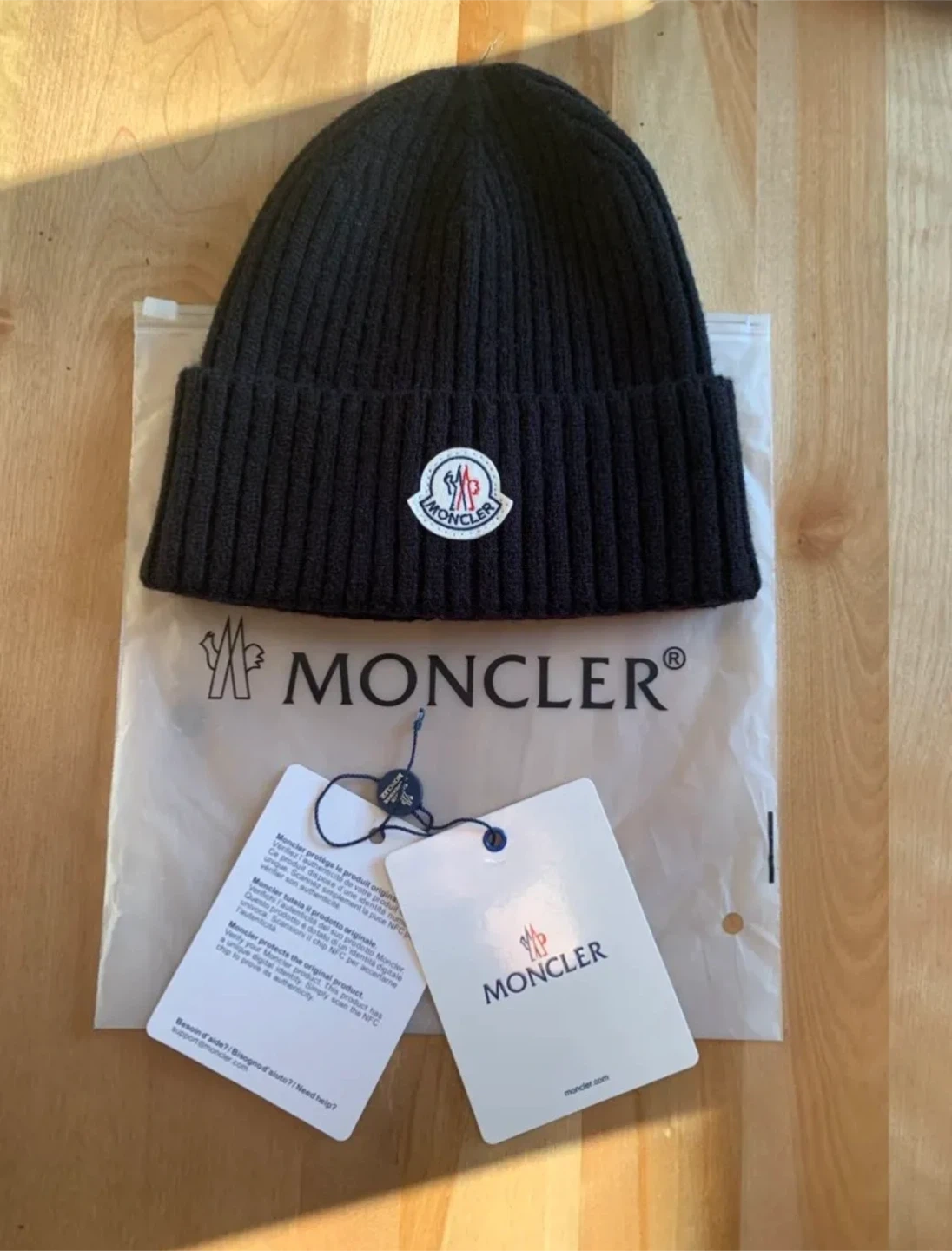 Selling a brand new Moncler black ribbed knit beanie, never worn and still with tags! Size is 56cm/flexible. Comes with the original packaging. Can ship out the item as well