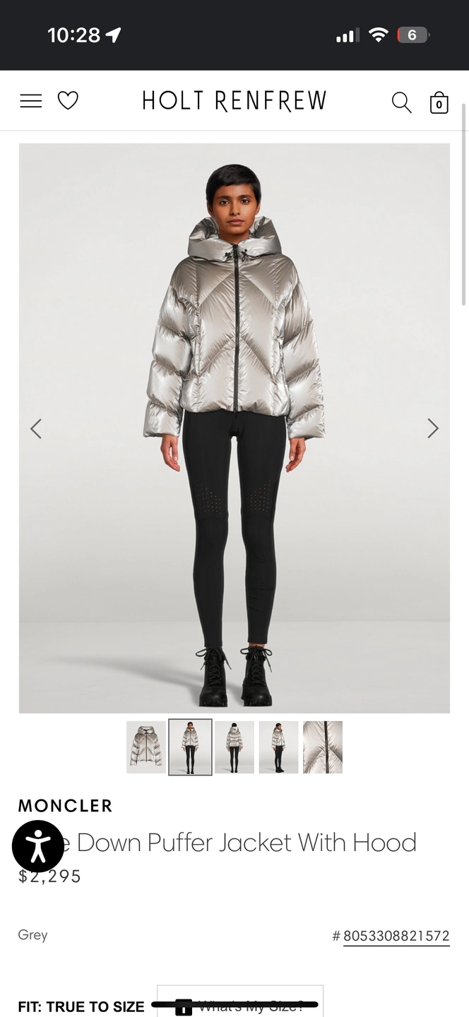 26Silver coloured puffer jacket with a hood. https://www.holtrenfrew.com/en/Products/Womens/Womens-Clothing/Coats-Jackets/Puffers-Parkas/MONCLER-Frele-Down-Puffer-Jacket-With-Hood/p/20197786003 $2295 >> 880