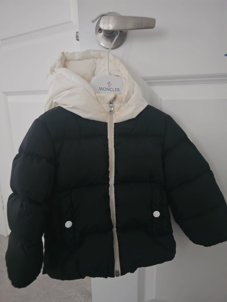 20Selling a Moncler kids down padded jacket. It's in great condition and perfect for keeping your little one warm during the colder months. The jacket features a stylish design with the iconic Moncler logo on the sleeve. It's a durable and fashionable choice for kids!