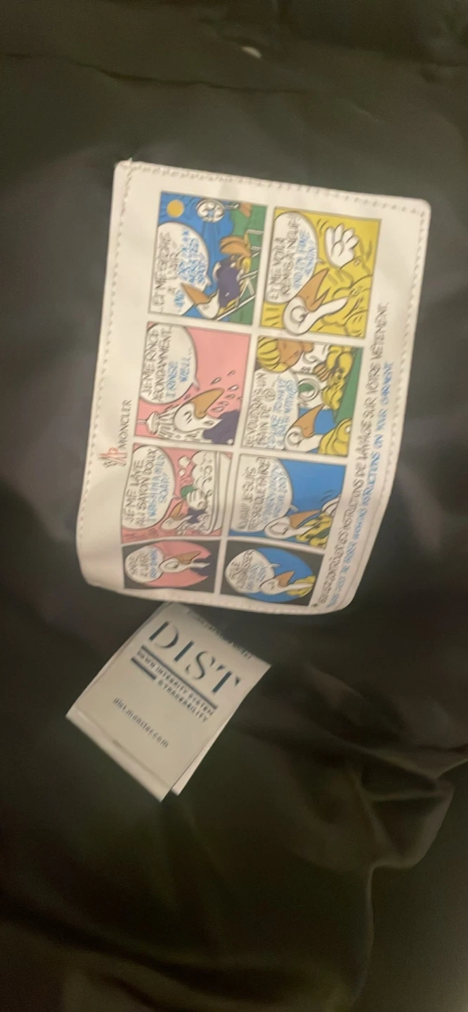 5Selling a Moncler varsity jacket in size XL. It has a black body with white sleeves. The fit is oversized, making it super comfy and stylish!