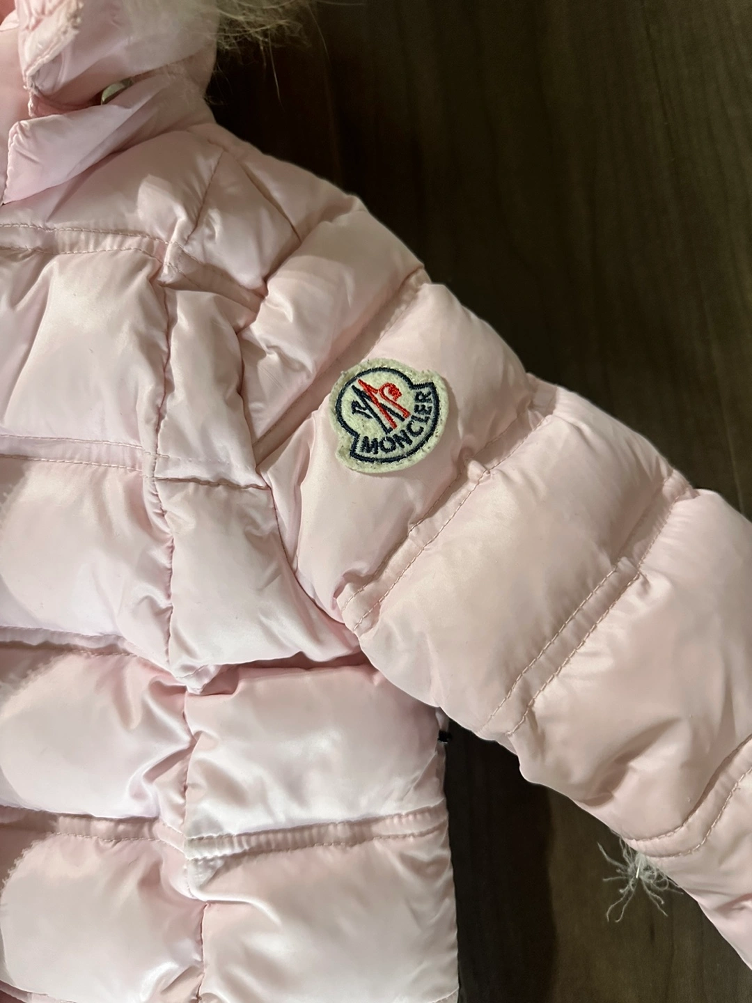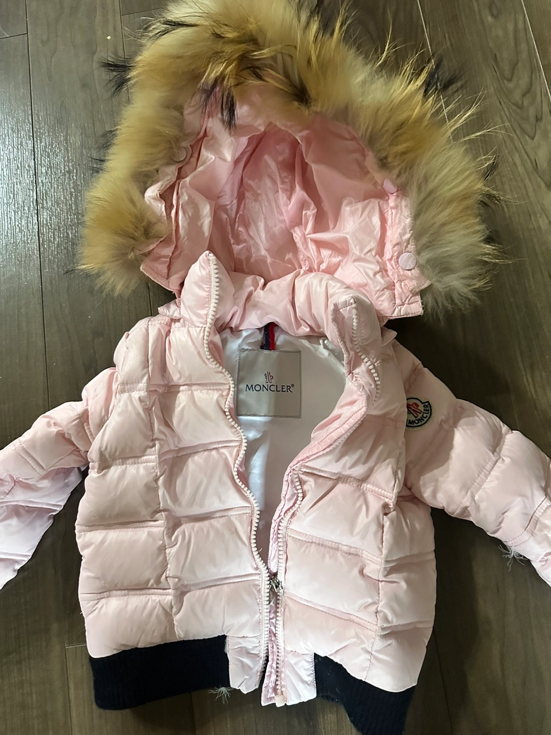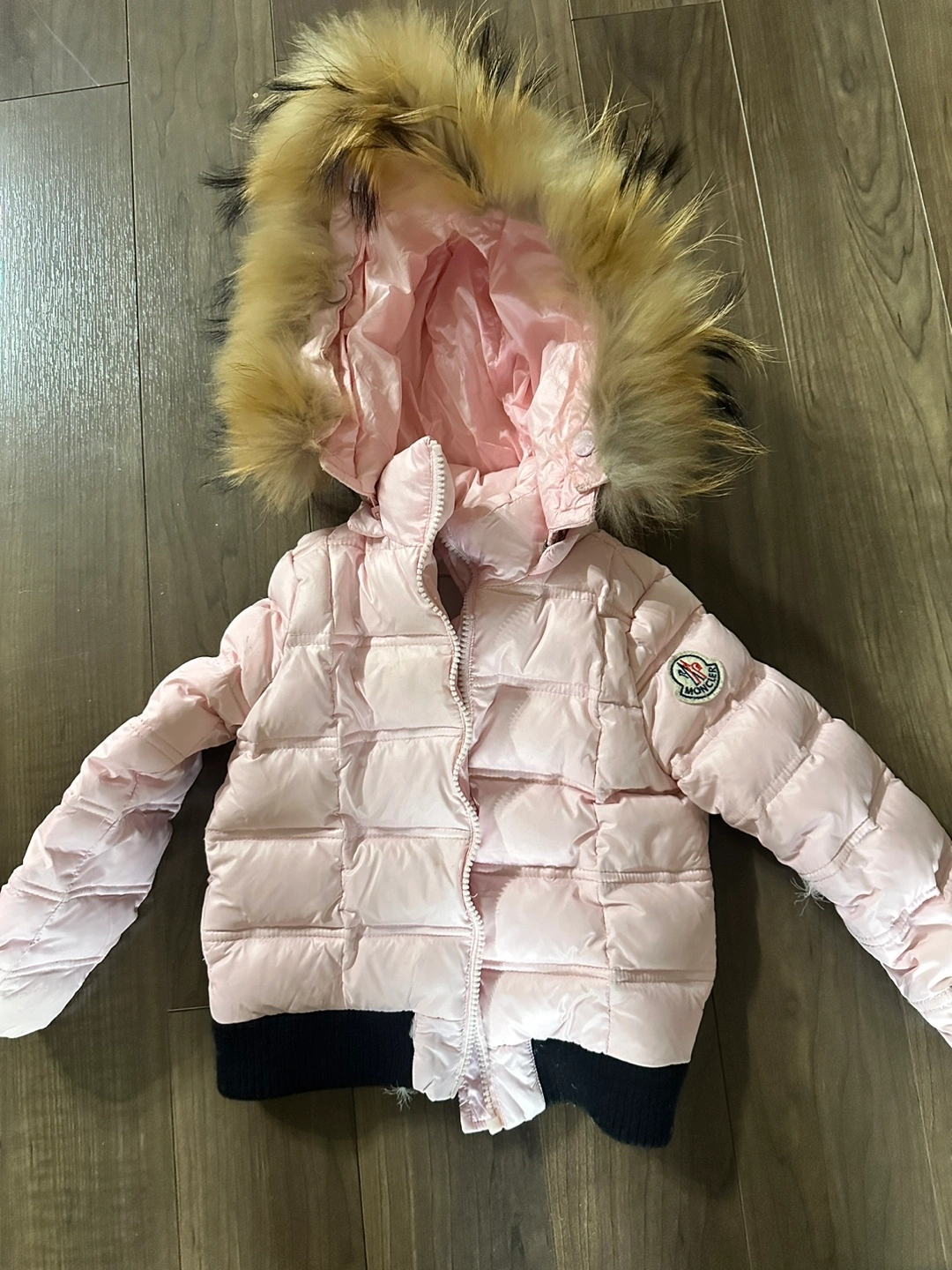 Pink puffer jacket with a fur hood. Size 2-3 years.
