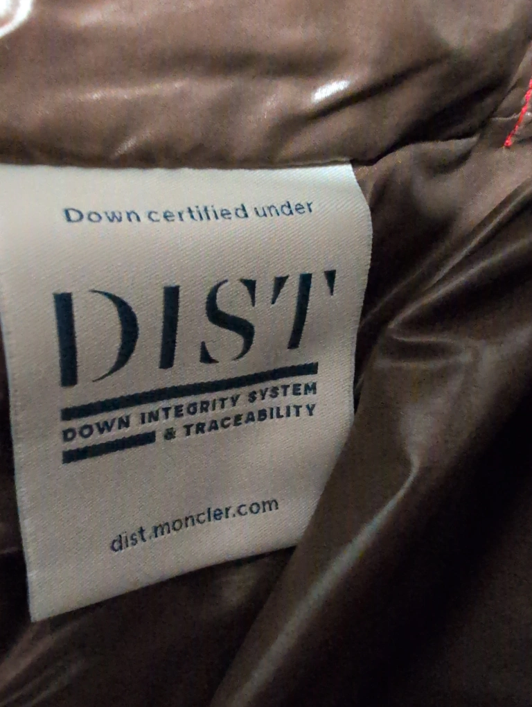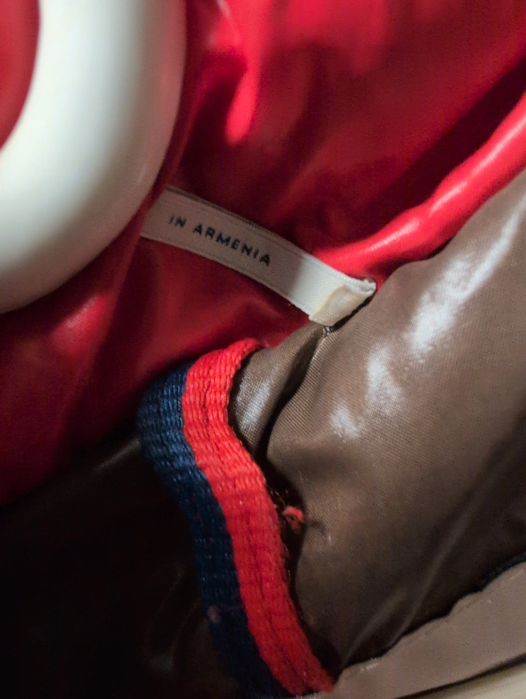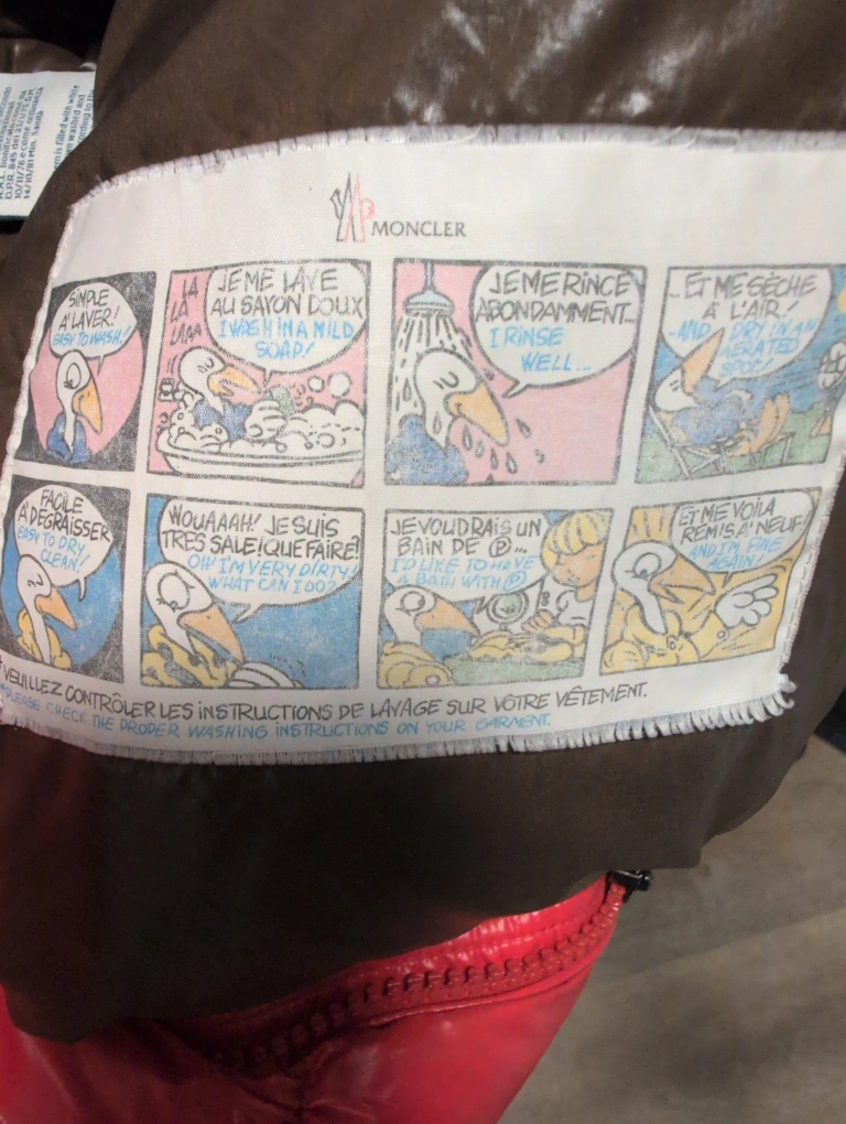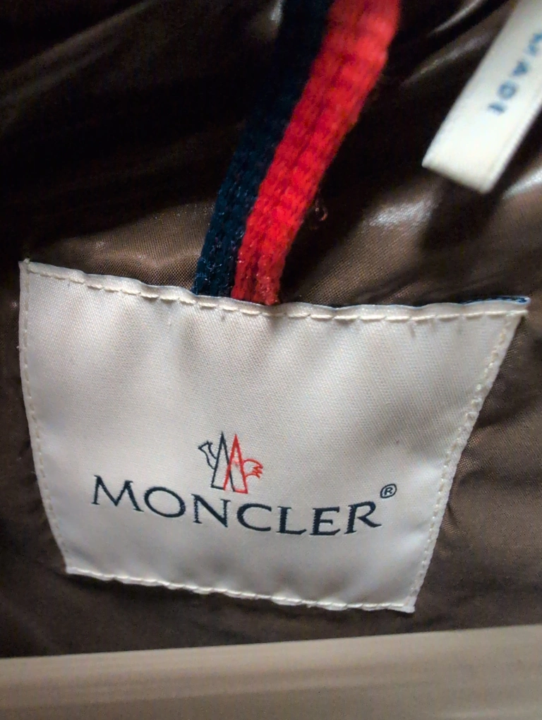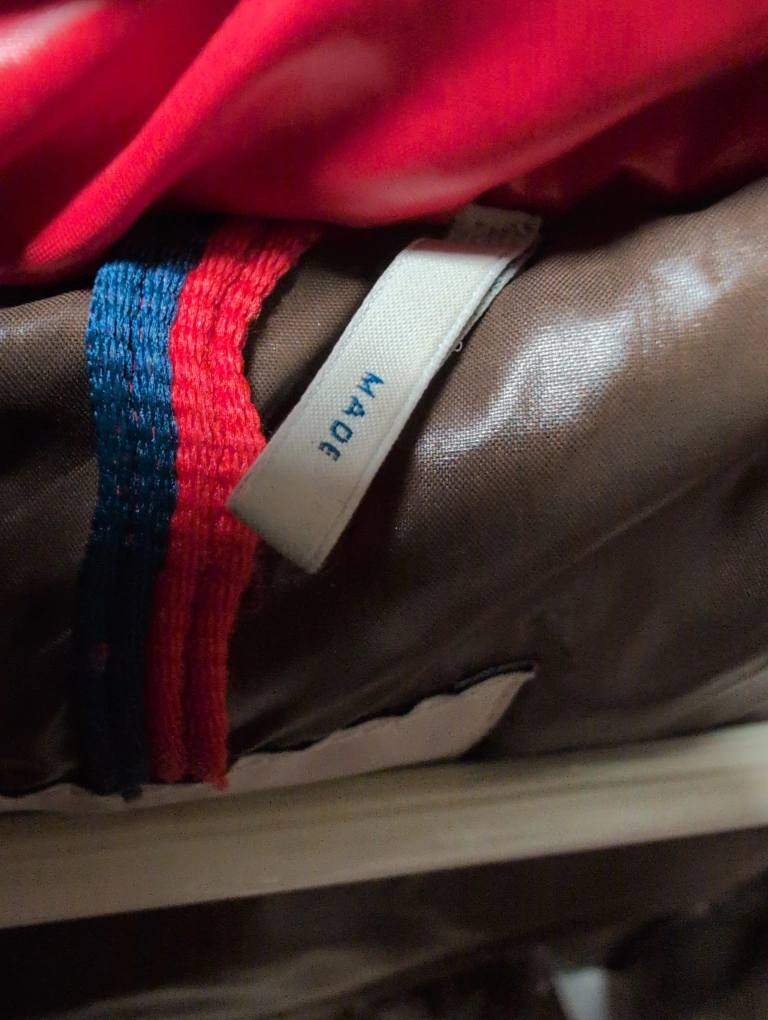 A vibrant red puffer jacket. It has a zip closure, a high collar, and pockets. Buttons feature the brand's logo. This puffer jacket is perfect for keeping you cozy on a chilly day.