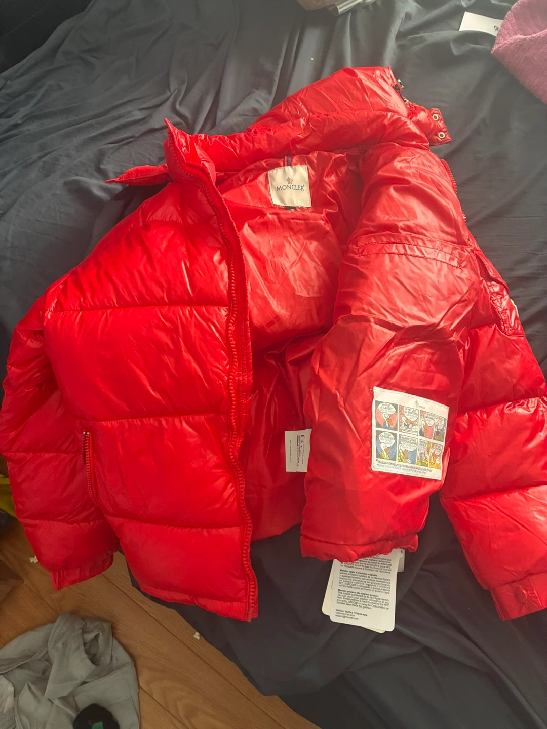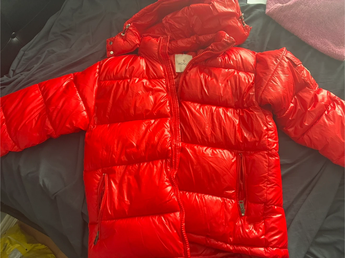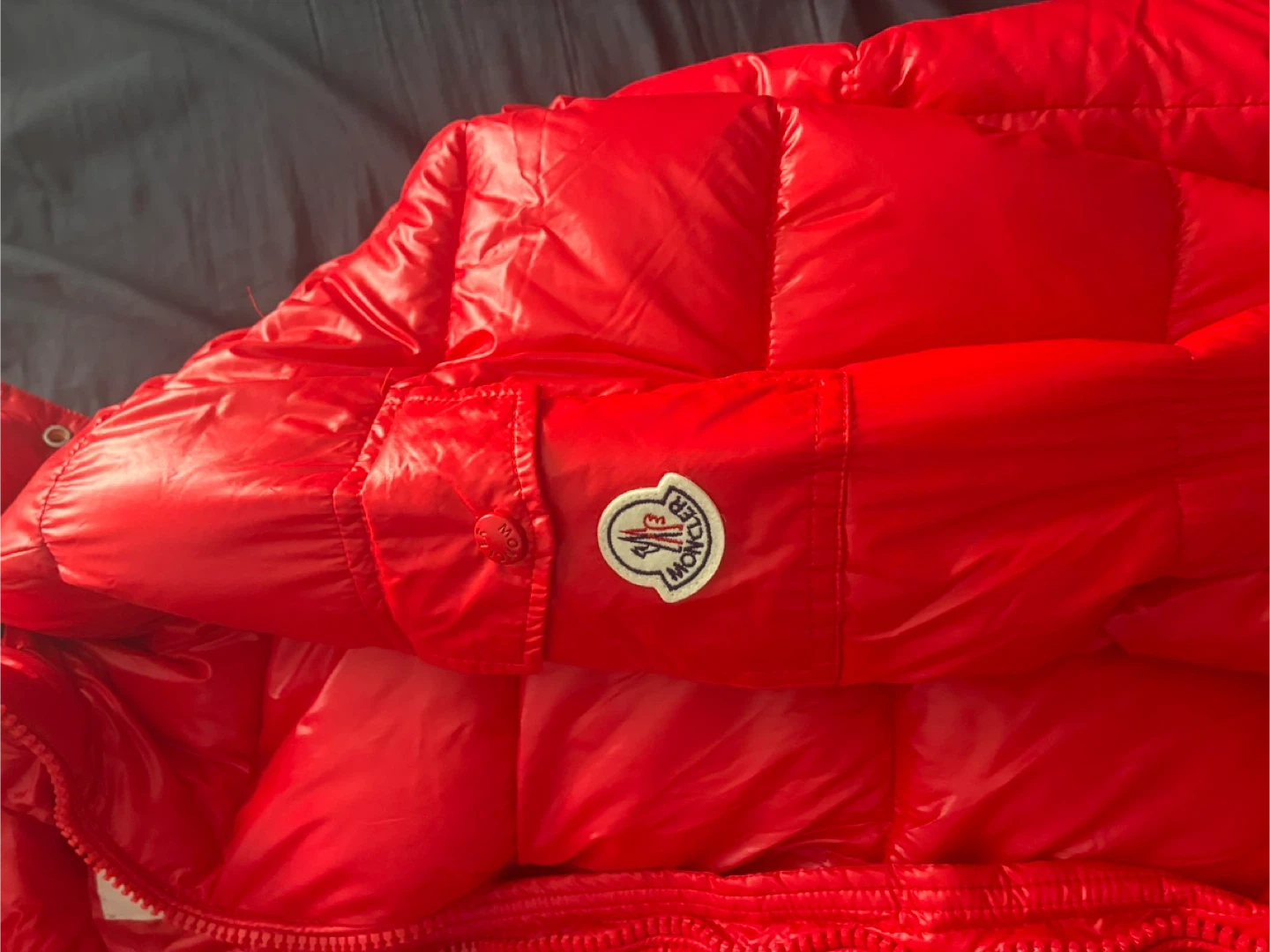 10Selling a bright red Moncler puffer jacket! It's in great condition and ready to keep you warm this winter. The jacket features a classic puffer design with the iconic Moncler logo on the sleeve. A stylish and functional addition to your wardrobe!