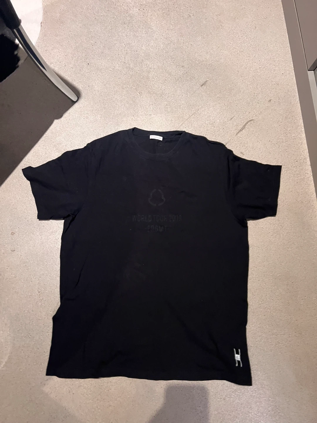 15Selling a Moncler black t-shirt from the World Tour 2018 collection. It features a unique design on the back with "BACKSTAGE<PASS>" and check boxes for "ARTIST", "VIP", "FRIEND", and "STAFF". It also has the Moncler logo on the front and a distinctive logo tag on the hem. A great addition to any wardrobe!