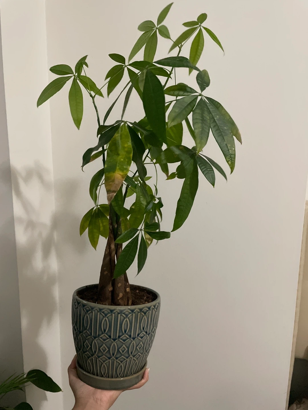 85Selling a lovely money tree, perfect for adding a touch of greenery to your space! It comes in a stylish blue patterned pot that complements the plant beautifully. It's in great condition and ready to bring some good luck to your home.