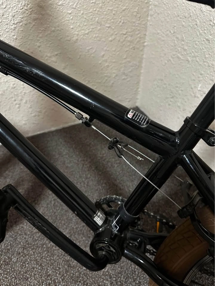 10Used but in great condition. Perfect for beginner BMX riders. Has been collecting a little bit of dust in my room for a while now and decided to sell. 360 magnetic brakes so the wires don’t get caught (seen in pics 8 and 9). Comes with the pegs. Has few scratches on the left side.