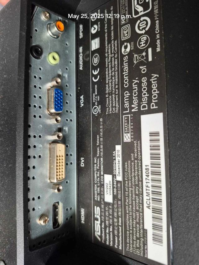 10Works great. Asking price are given below. Flatron - $20 Asus 27 inch - $70 Hp - 20 inch- $20 Screen Size: 19"-20"