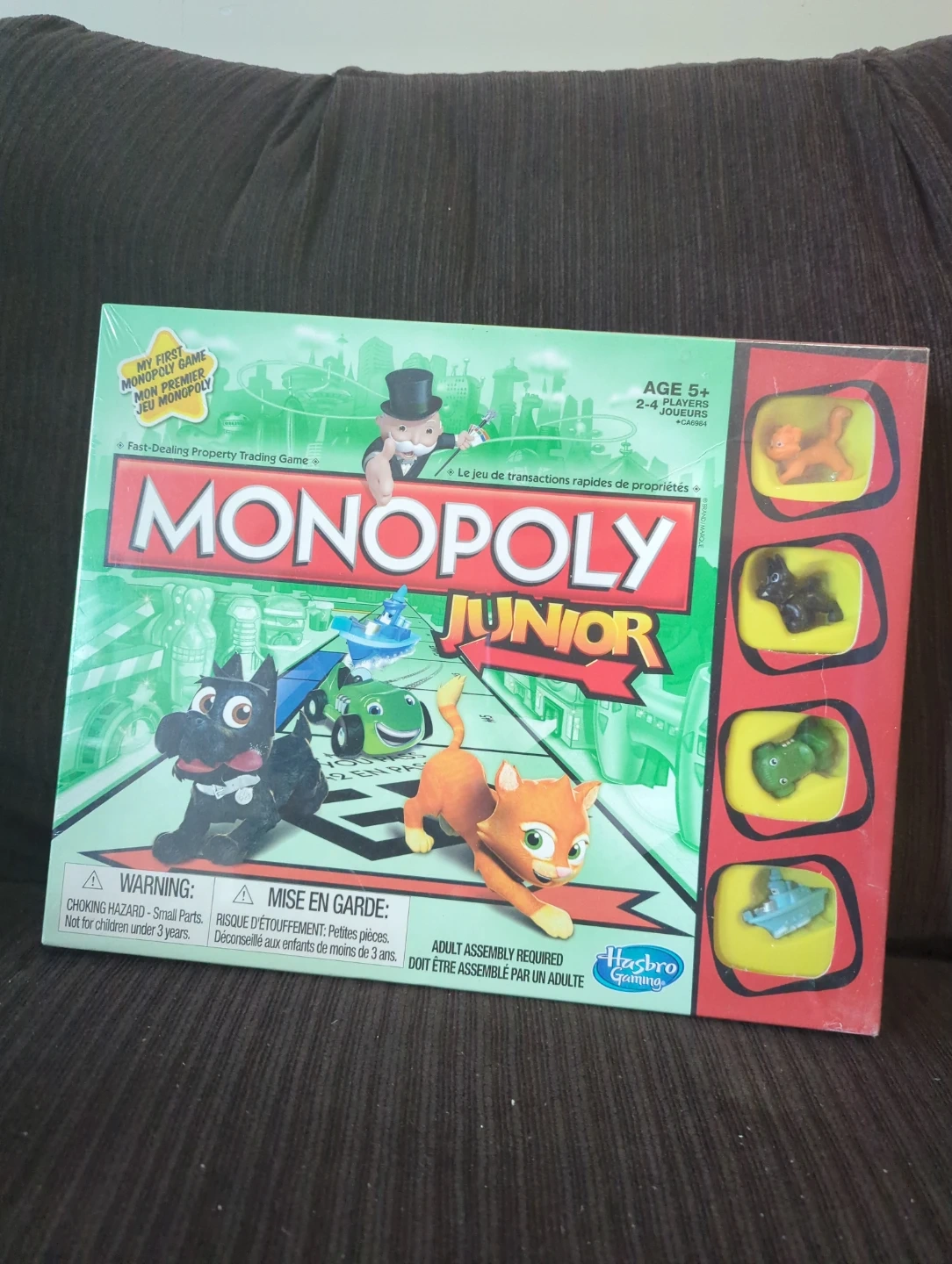87Selling a Monopoly Junior board game, perfect for kids aged 5 and up! It's a fast-dealing property trading game that's fun for 2-4 players. Get your little ones started with this classic game!