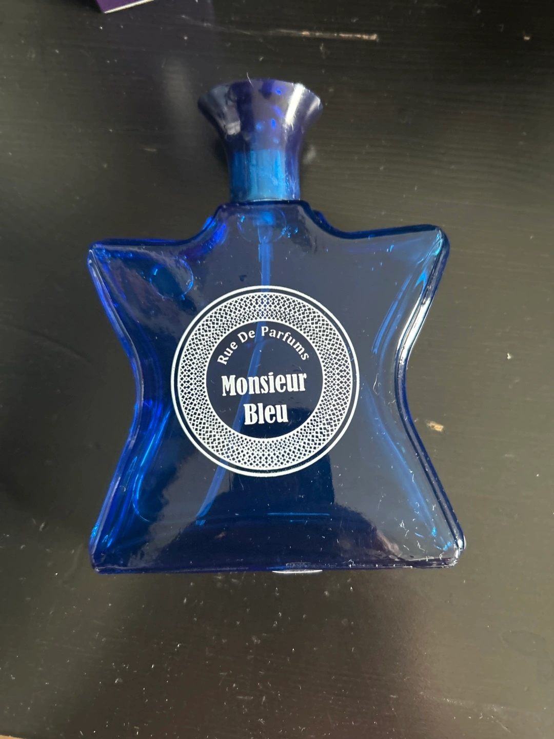100ml bottle of Monsieur Bleu Eau De Parfum. Star shaped bottle. Includes box.