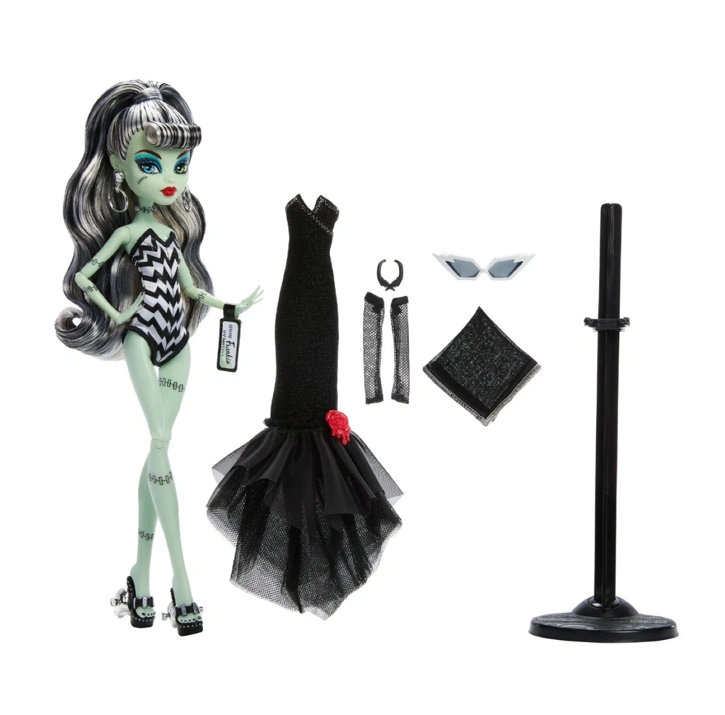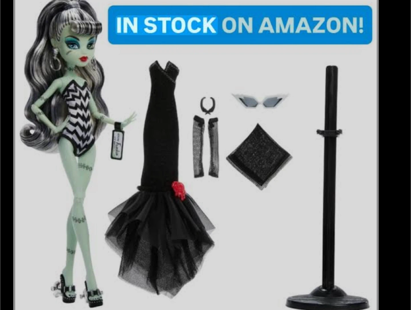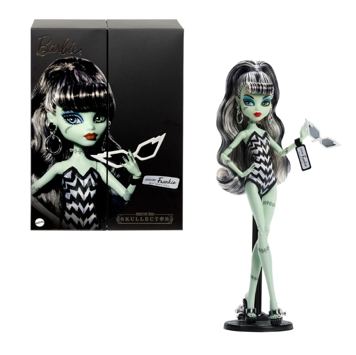 37Selling a brand new Monster High x Barbie Frankie Stein doll! This doll comes with an original Barbie-inspired swimsuit and Solo in The Spotlight black evening dress, as well as accessories. Perfect for collectors or Monster High fans