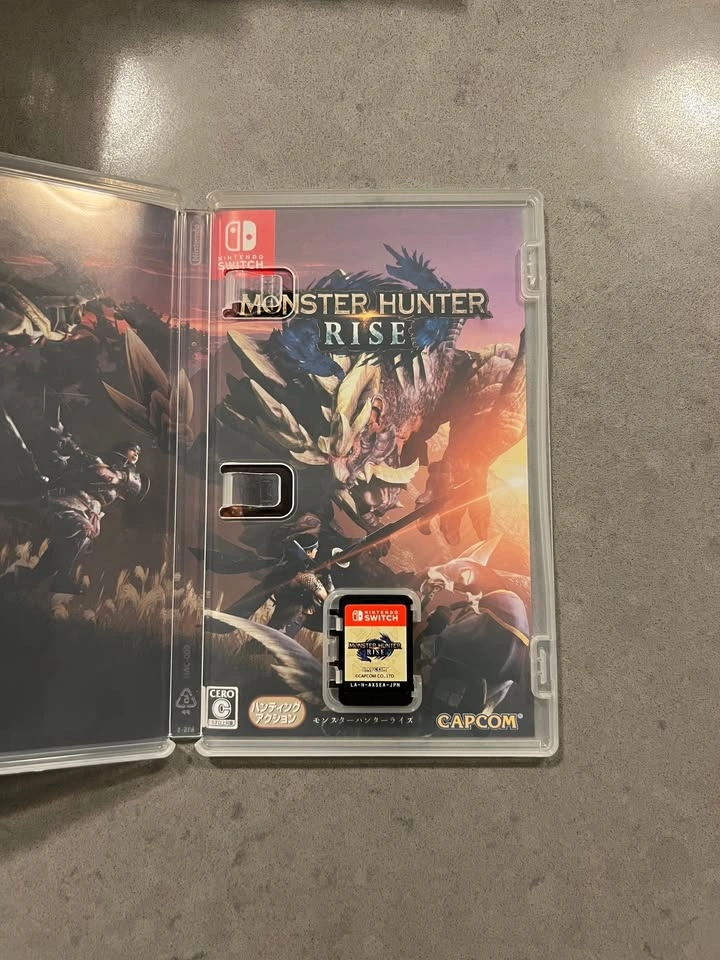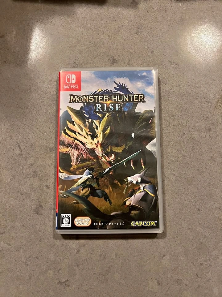 Monster Hunter Rise for Nintendo Switch, in excellent condition. Located at Brentwood Mall. The price is firm. The game plays entirely in English, though the cover might be in another language since I collect international editions.