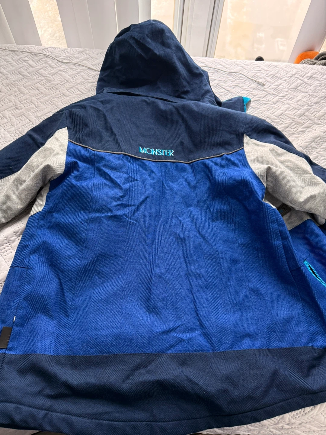 973Selling a gently used Monster snow jacket in a cool blue and grey colour scheme! It's perfect for keeping youwarm and dry on the slopes or during winter play. The jacket features a hood and several zippered pockets for convenience.