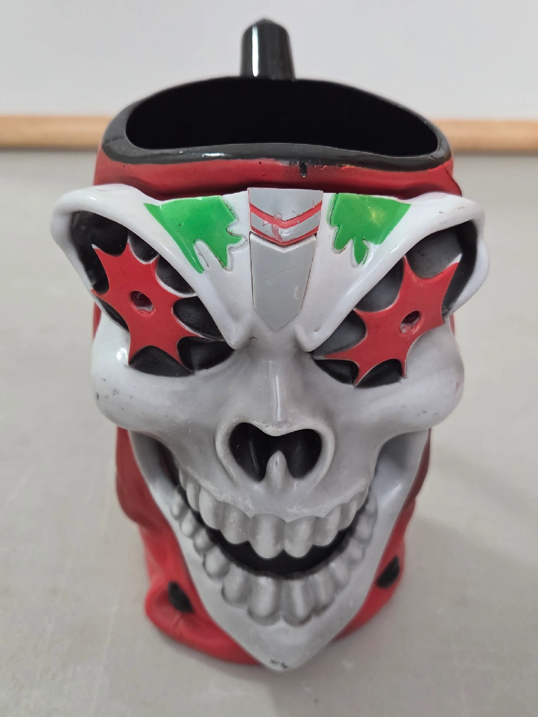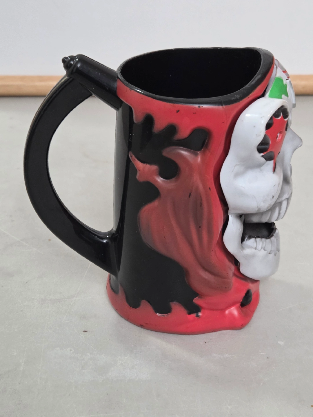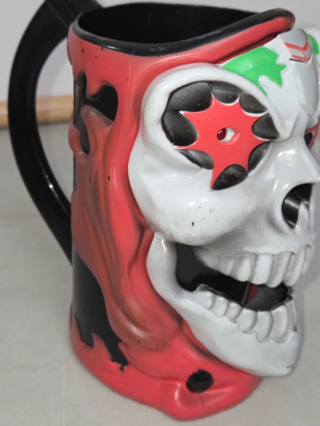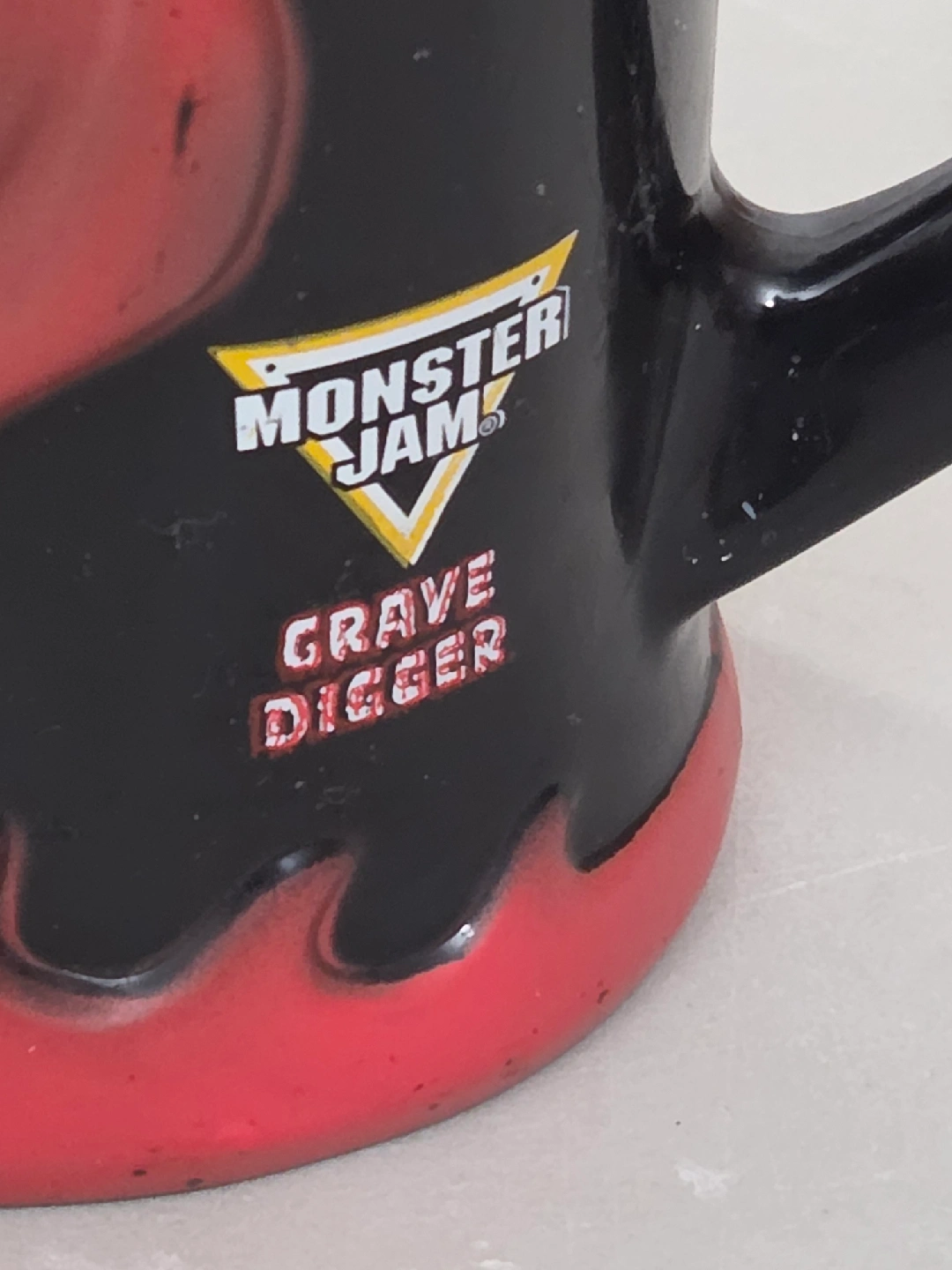 60This listing is for a pre-loved Cool Monster Jam Grave Digger Skull Face 12oz Mug Cup. The skull face eyes and mouth light up, but will require grabbing fresh batteries at the dollar store only requires 3 and as seen in photo it is a removable skull face so it can be washed. It's in good condition with mild cosmetic issues as captured in photos