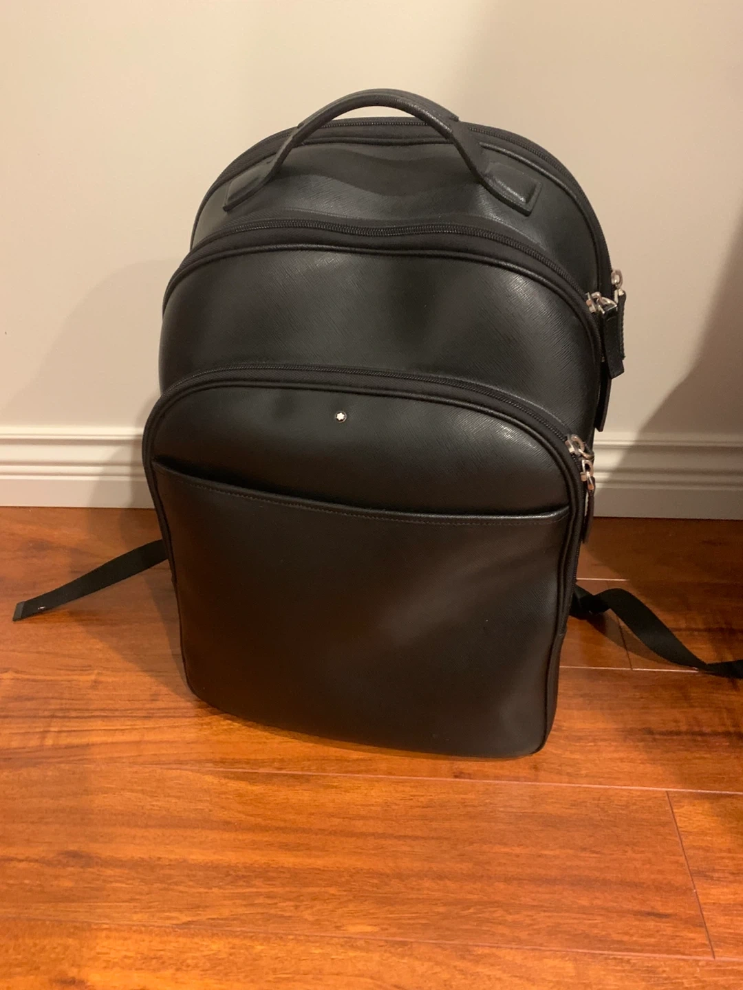 129Selling a Montblanc black leather backpack in great condition! It's a stylish and functional bag, perfect for everyday use or travel. The backpack features multiple compartments for organization and comfortable straps for easy carrying. It's made of high-quality leather, ensuring durability and a luxurious feel It has a bit of wear on the backside as photo