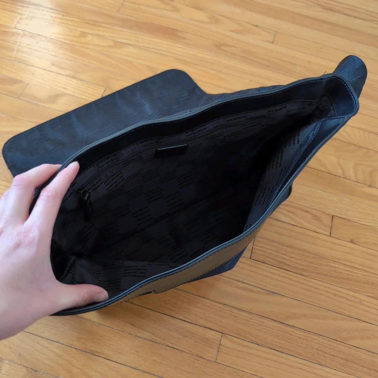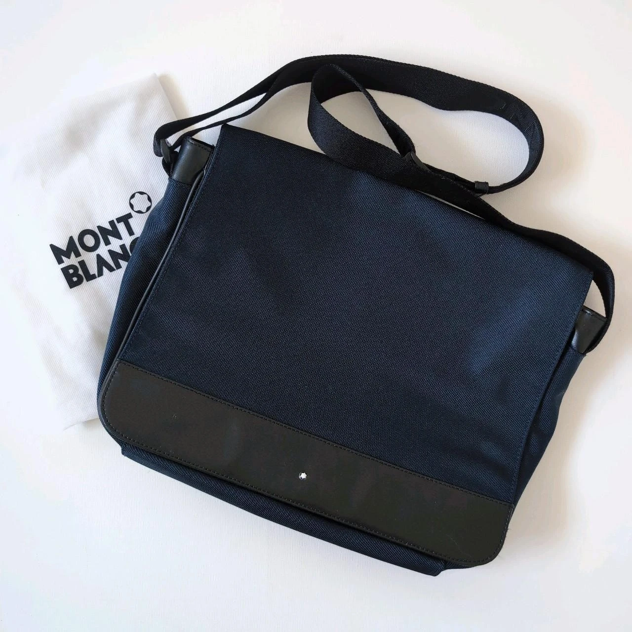 15Selling a Montblanc messenger bag in navy blue! It's in great condition except for some minor wear as shown. Perfect for everyday use. The bag features a stylish design and is made in Italy.