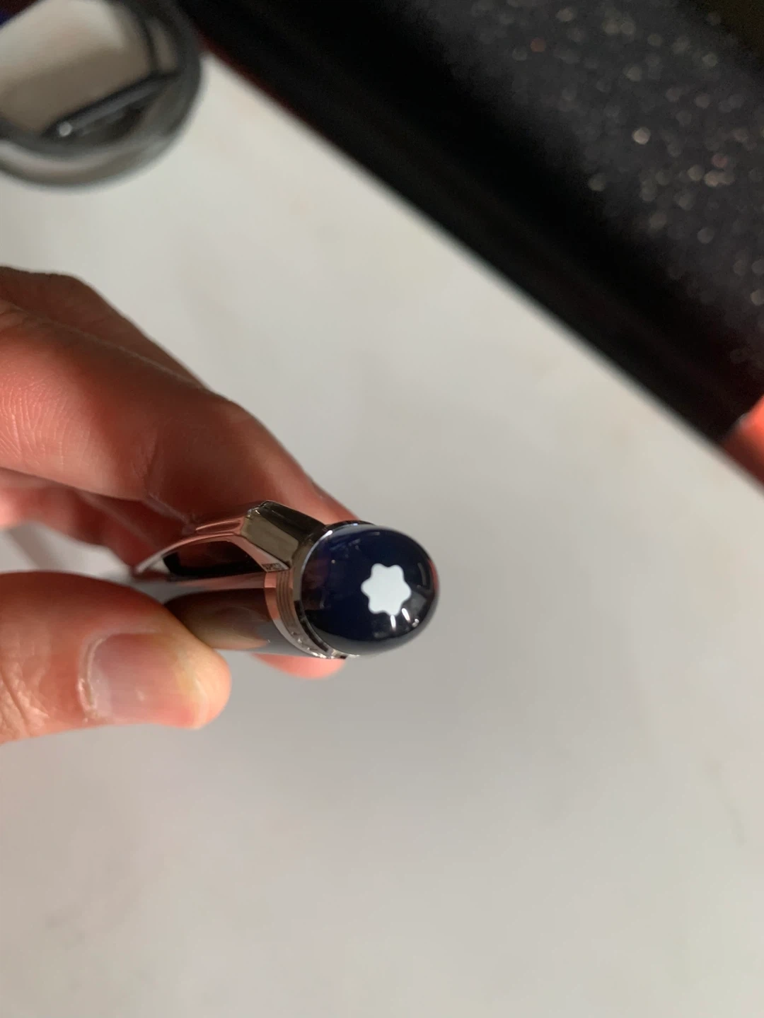 Selling a Montblanc ballpoint pen. It's in excellent condition and ready for a new owner. The pen features a sleek black design with silver accents and the iconic Montblanc emblem on the cap. Perfect for everyday use or as a gift!