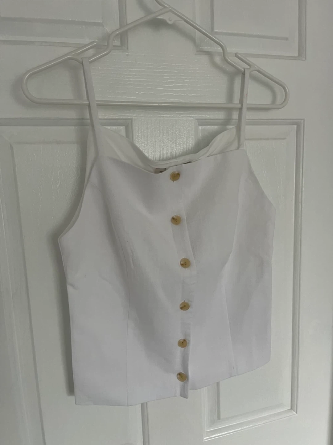 15This cute white top is a linen blend. It features a button-down front and a classic, clean look. The brand is Monteau Los Angeles and it's a size M. It's in great condition and ready for a new home