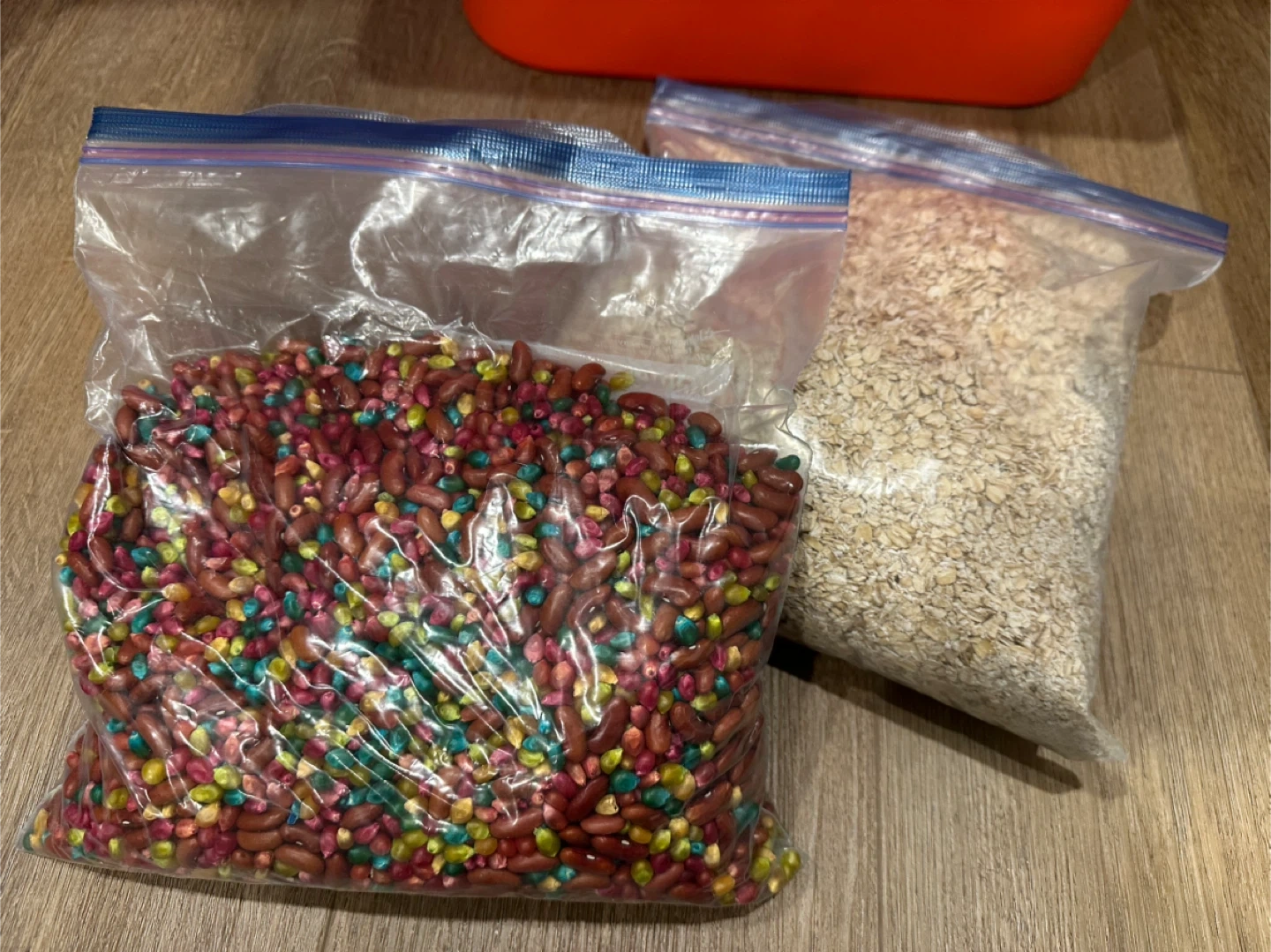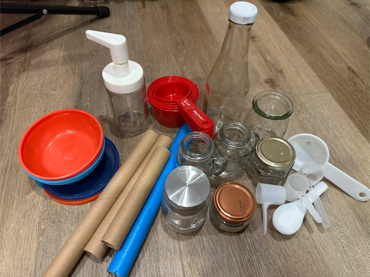 Sensory materials for the Montessori toddler. - assorted containers and jars and lids - tubes, scoops, funnel - rainbow beans sensory play - oatmeal sensory play