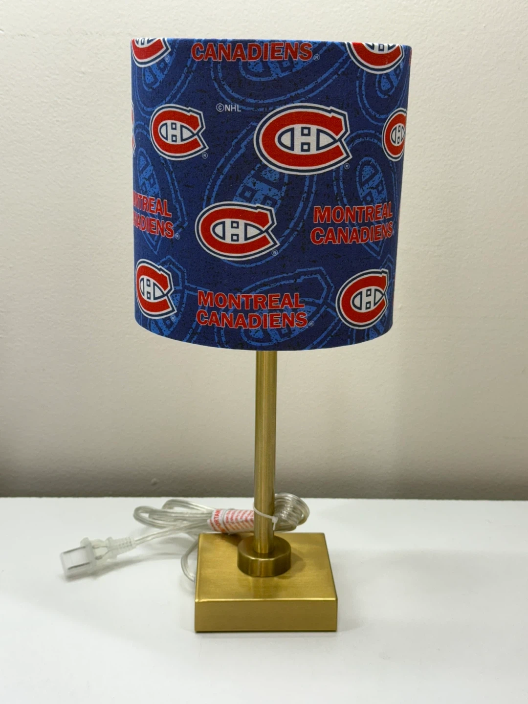 Show your Habs pride with this unique table lamp! The lampshade features the Montreal Canadiens logo and colours. It's perfect for a bedroom, office, or any space where you want to display your team spirit Handmade lamp