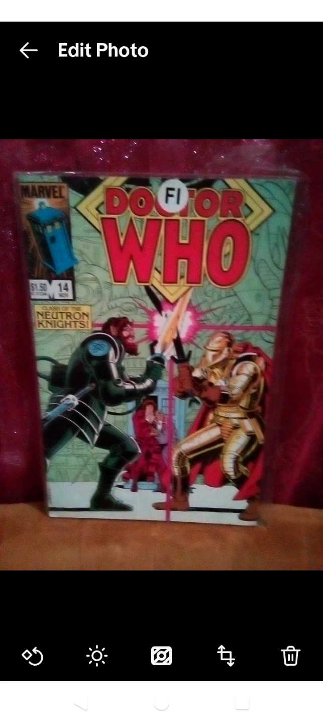 This Marvel comic book features Doctor Who and Vision and Scarlet Witch. It's issue 14 and is titled Neutron Knights. A must-have for collectors!