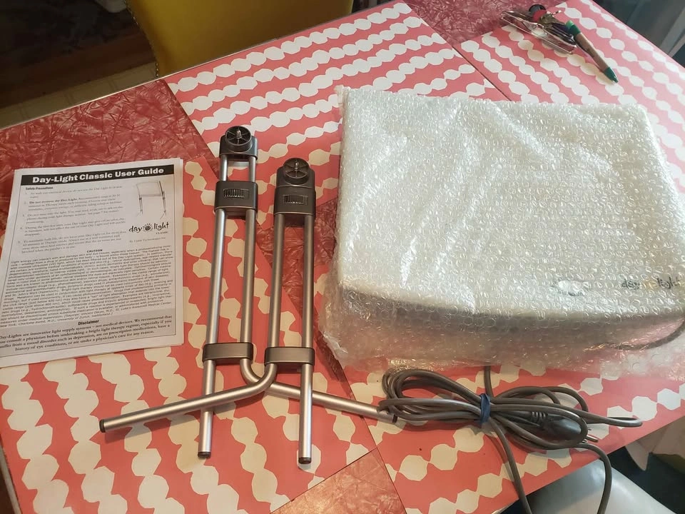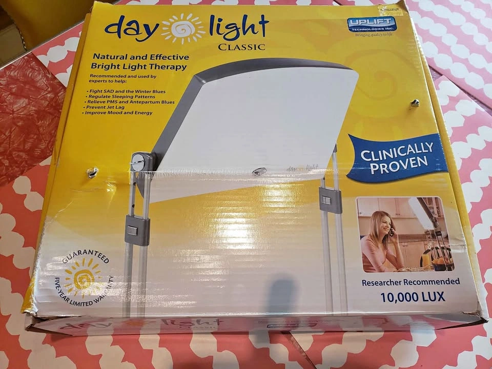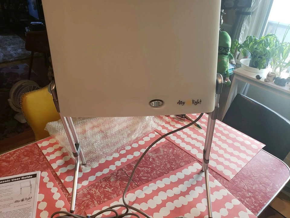 25Daylight Classic model light therapy lamp by Uplift Technologies. Comes with box and user manual. Comes apart for easy storage back into box. Super easy assembly just insert the legs on the side and twist the large dial to tighten. Adjustable legs for height and adjustable lamp for different angles. This is a larger unit to sit in front of the light is about 14" by 18" not including the stand and gives off 10,000 LUX. Unit is clean and and in good condition. Works well. Some natural wear and tear on the box. Purchased for $240 + tax. Asking $90. Pick up in Upper Lonsdale North Vancouver. Cross posted with Marketplace.