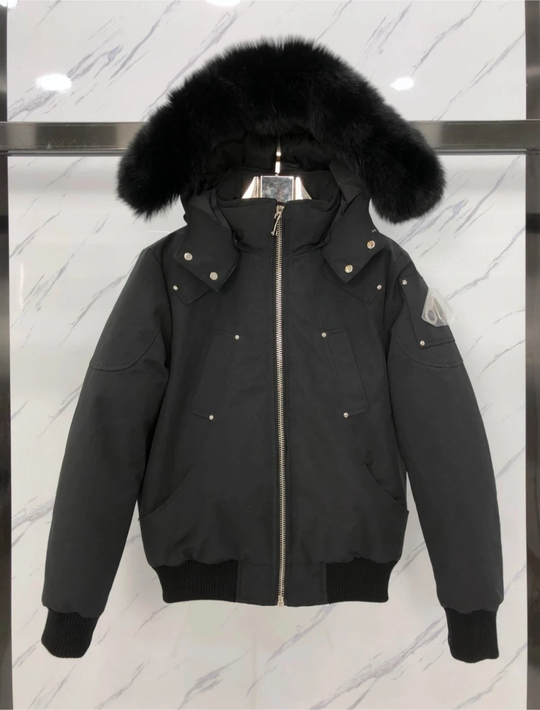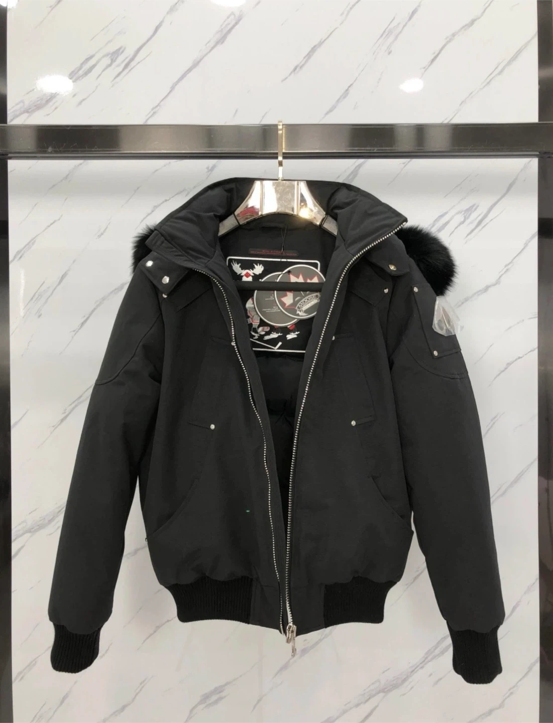 65Selling a stylish Moose Knuckles bomber jacket in black. It's a size Medium. Perfect for staying warm and looking great this winter! Best quality comes with tags Message me for any questions.