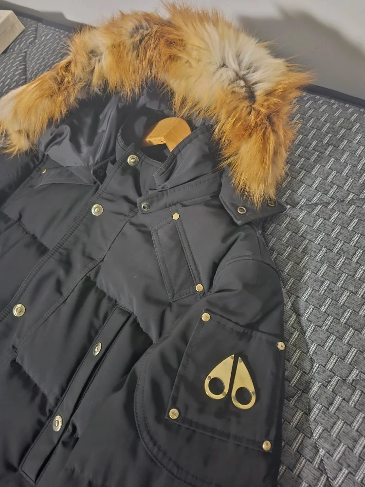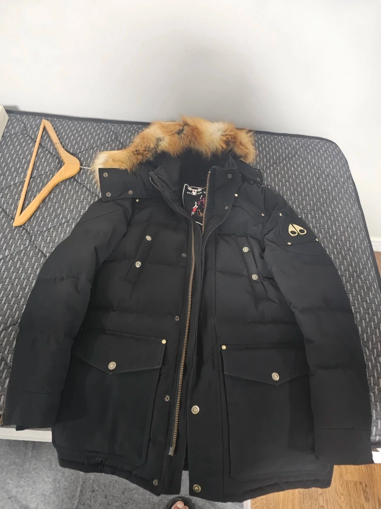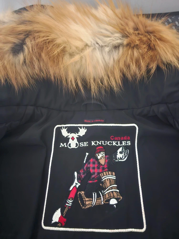 116Selling a gently used Moose Knuckles black GOLD down parka. It features the iconic Moose Knuckles logo on the pocket and a fur-trimmed hood. Made in Canada!