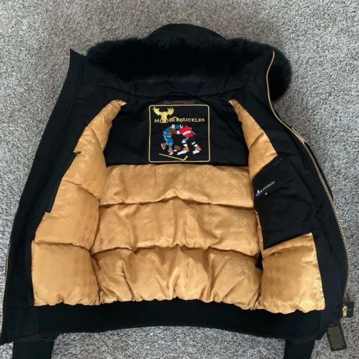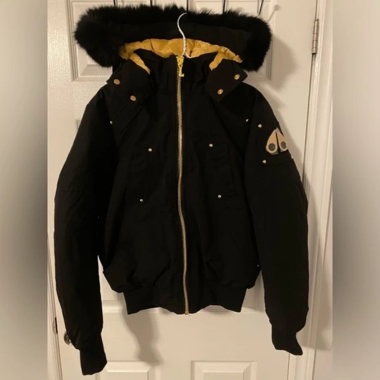 10Selling a Moose Knuckles bomber jacket in black. It's in new condition and ready for the colder weather! Features a fur-trimmed hood and the iconic Moose Knuckles logo on the sleeve. Perfect for staying warm and stylish this winter