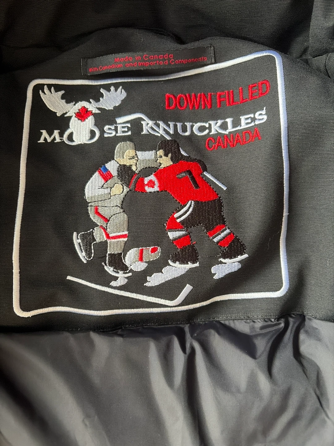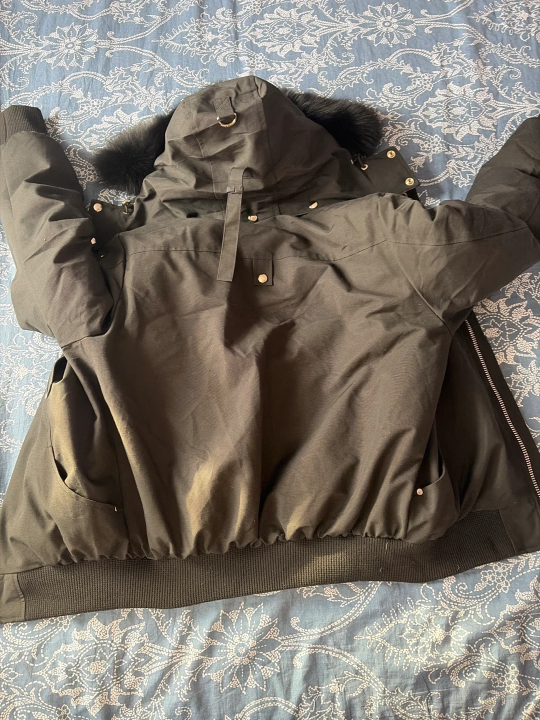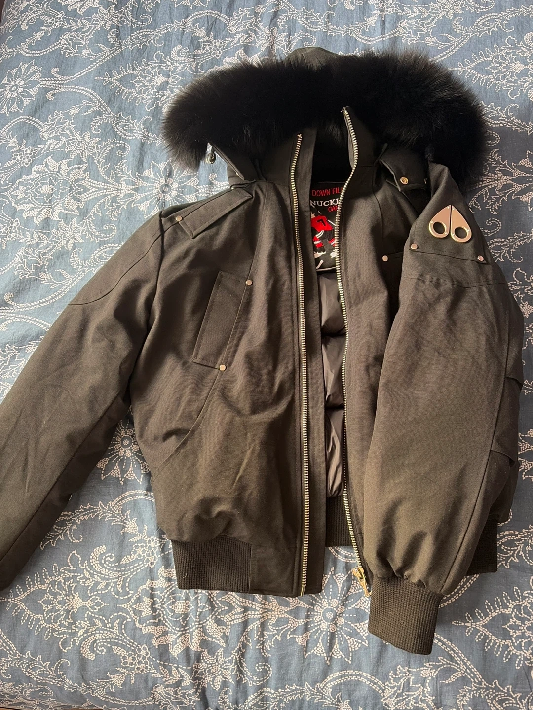 10Selling a Moose Knuckles bomber jacket in size M/M. It's a stylish and warm jacket perfect for the Canadian winter. The jacket is down-filled and features a fur-trimmed hood. Feel free to reach out if you have any questions!