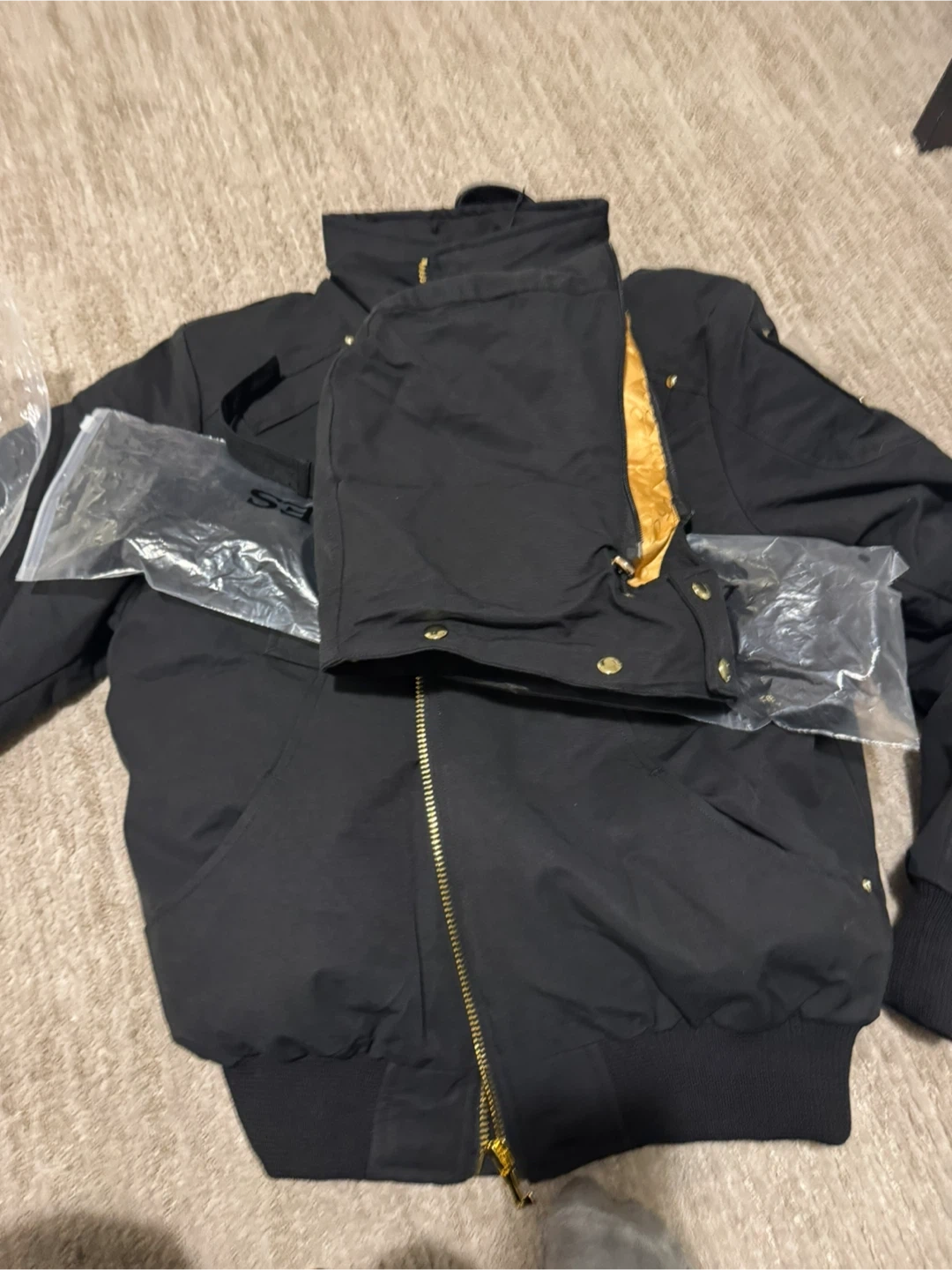 15Selling a Moose Knuckles bomber jacket in great condition! It's a size m and features a stylish design with gold accents. The interior lining is a unique gold pattern. A really warm and fashionable jacket for the Canadian winter!