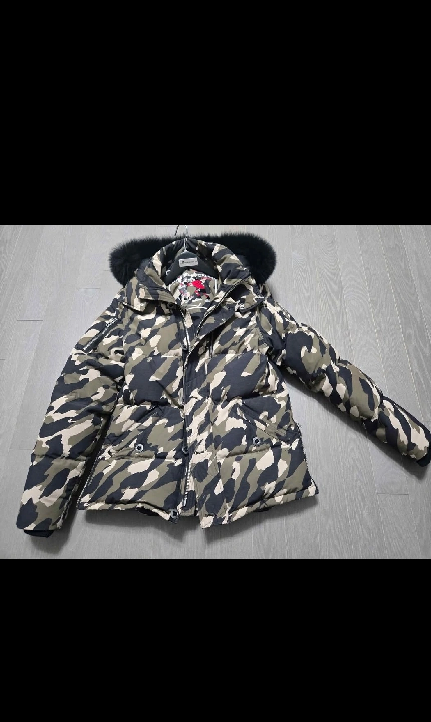 10Selling a Moose Knuckles puffer jacket in a camo pattern. It's a size small and features a fur-trimmed hood. Perfect for staying warm and stylish this winter!