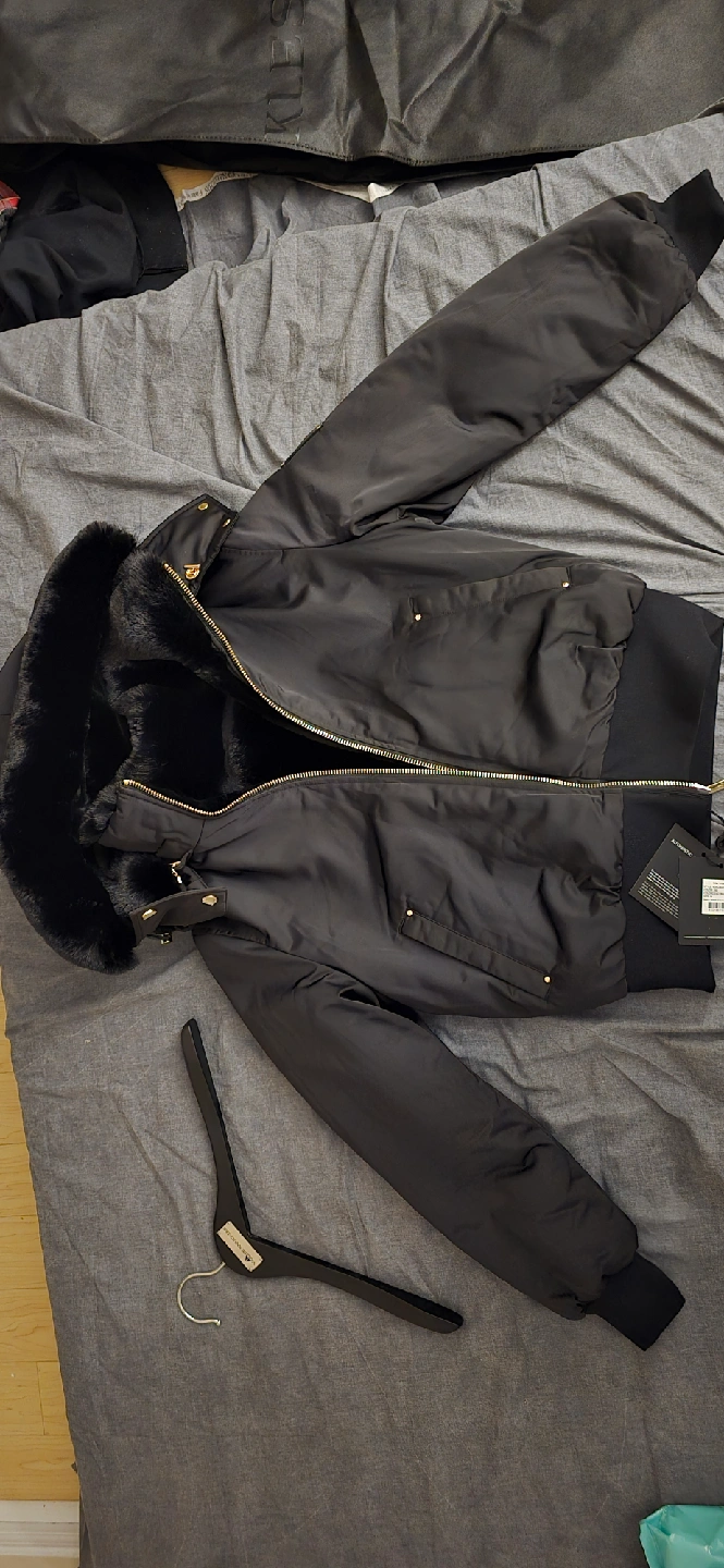60Selling a Moose Knuckles Debbie Bomber jacket in black, size medium. It's in great condition and ready for a new home! The jacket features a stylish design and is perfect for staying warm during the colder months. Don't miss out on this opportunity to own a high-quality jacket from a well-known brand