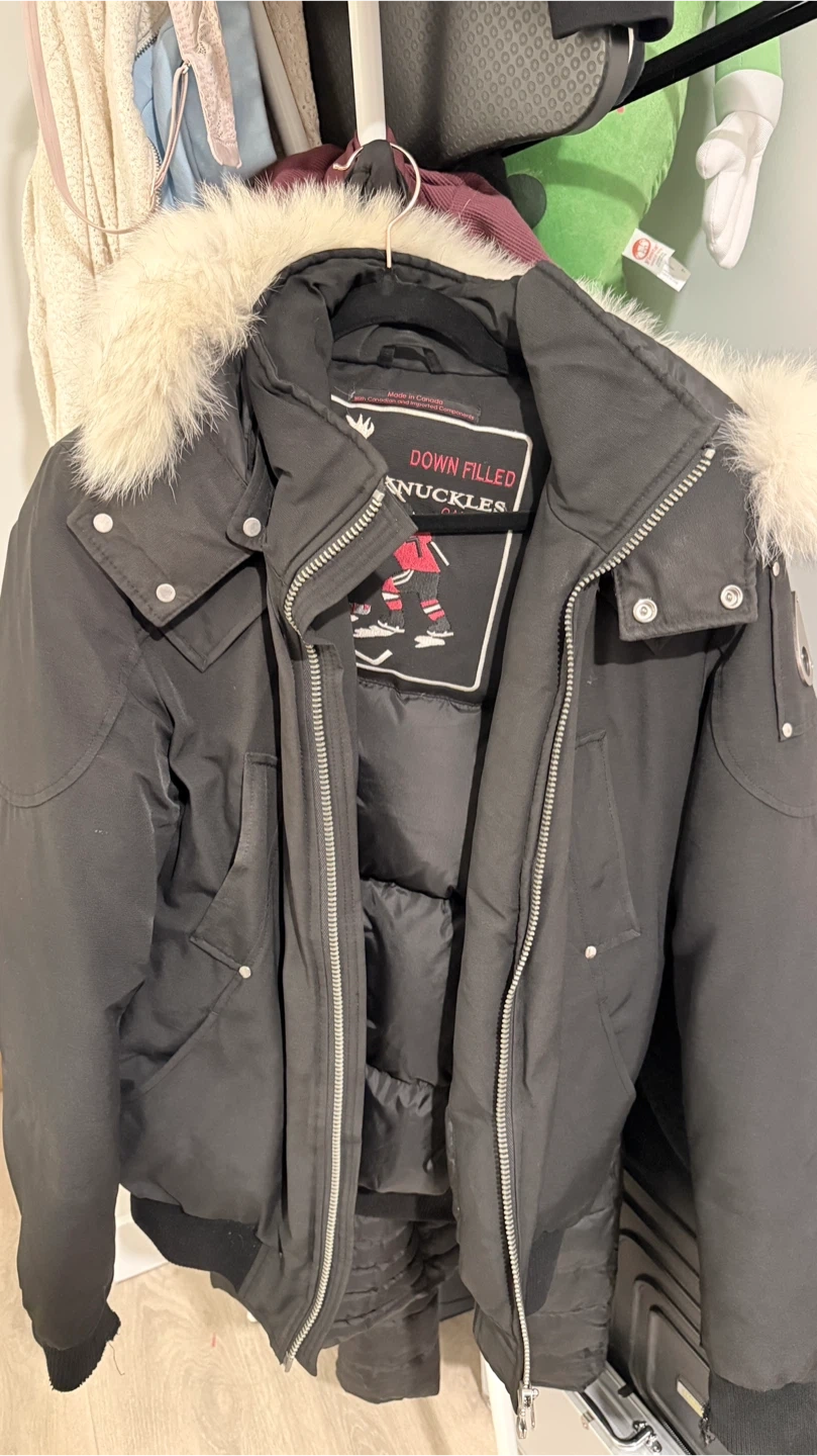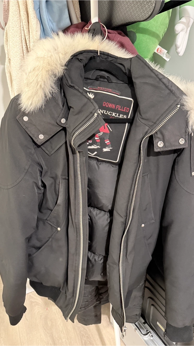 70Selling a Moose Knuckles down-filled jacket in size small! It's in great condition and perfect for staying warm during the Canadian winter. The jacket features a stylish design with the iconic Moose Knuckles logo. Don't miss out on this cozy and fashionable outerwear!