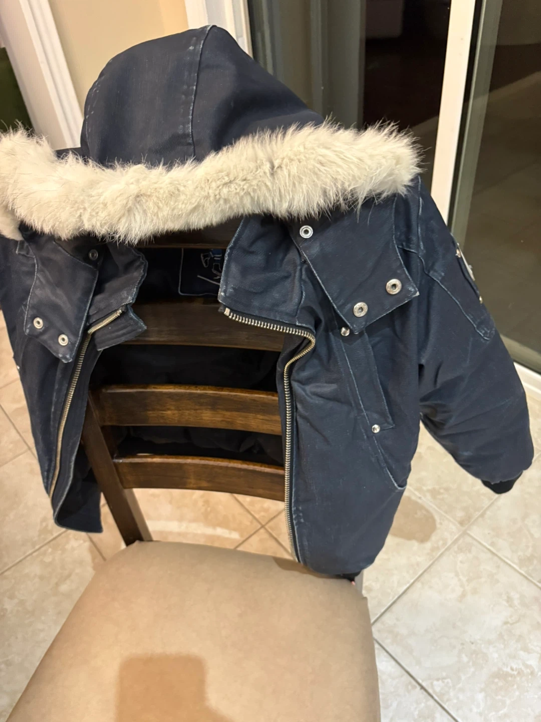 10Selling a Moose Knuckles jacket in size M/M. It's in great condition and ready to keep you warm this winter! Kids jacket looks like denim and really warm