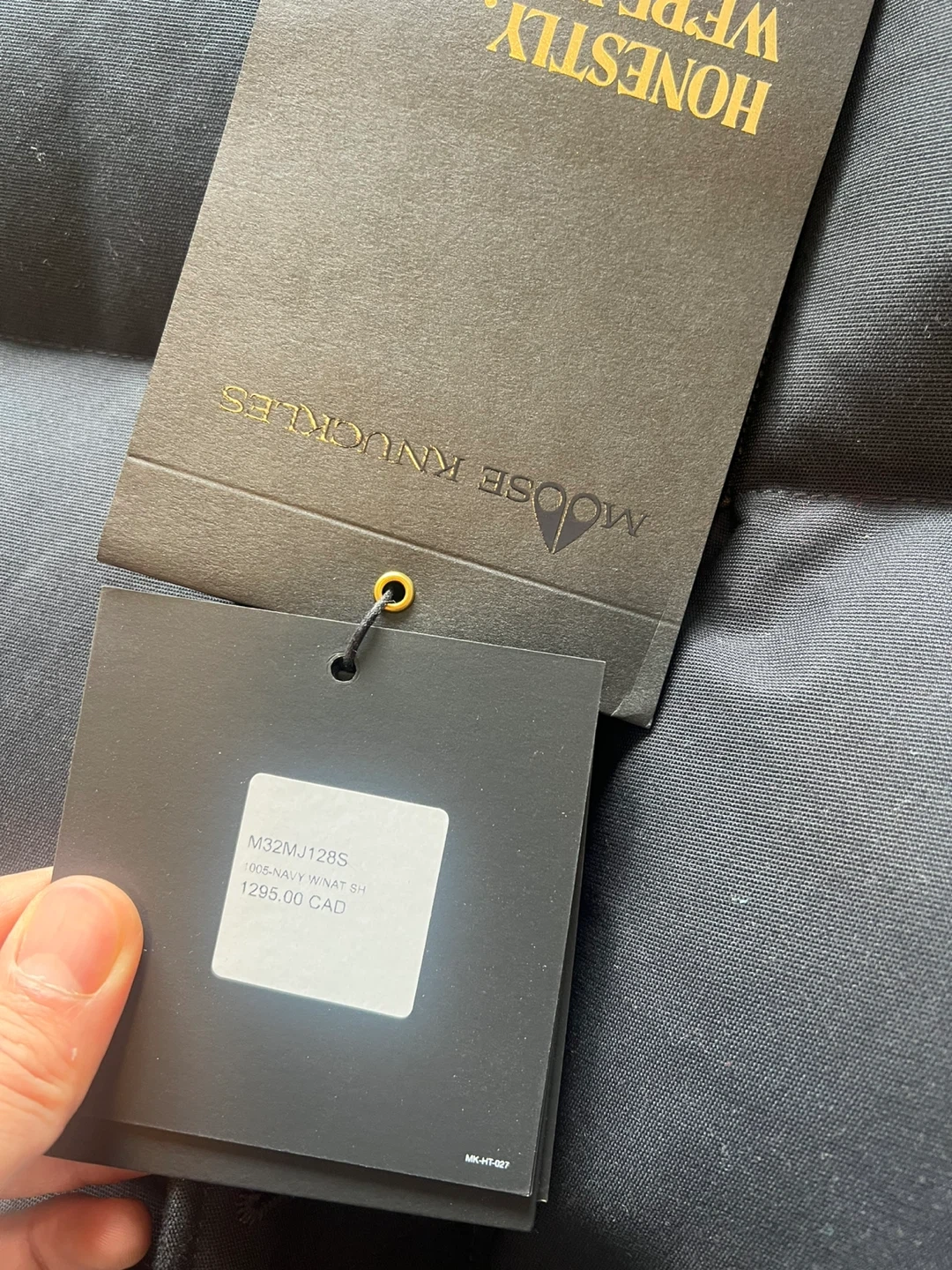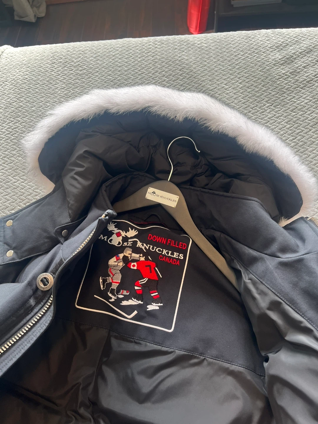 12Looking to sell a Moose Knuckles Men's brand new Jacket in size XL! The jacket is navy with natural white fur trim. Never used Color Description: Navy/ WNAT SH Originally bought for $1295 CAD