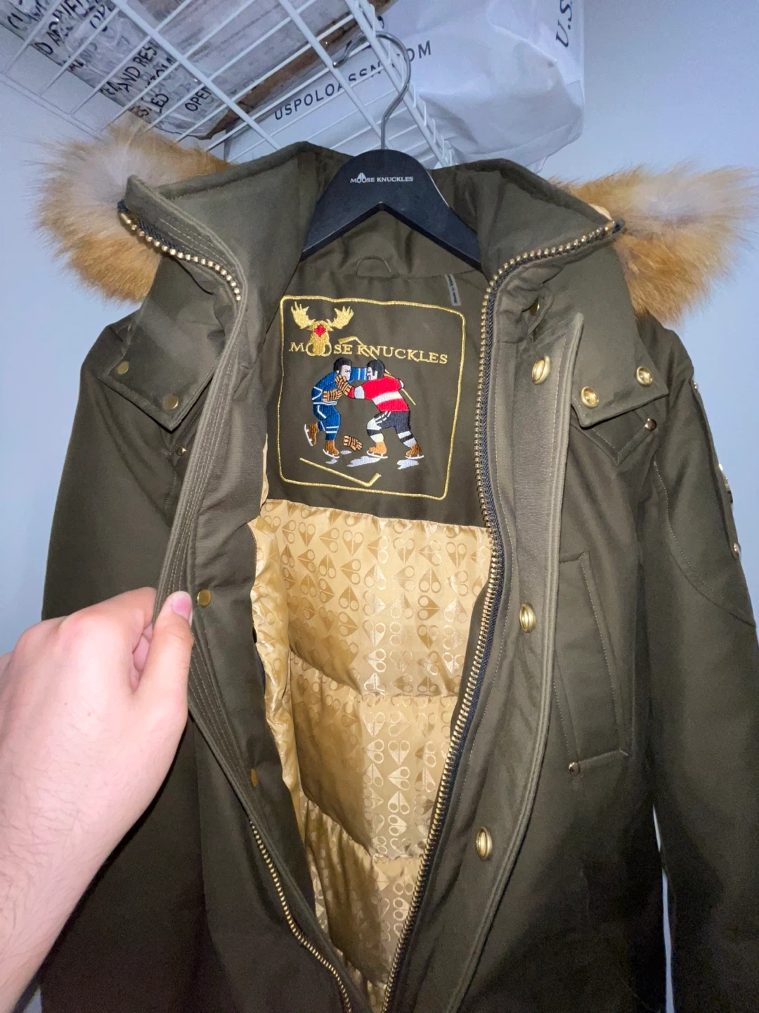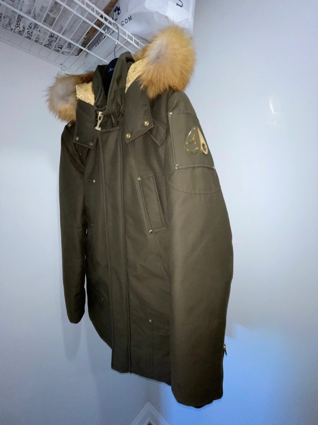 Selling a Moose Knuckles parka in olive green. It comes with its original garment bag. This stylish and warm parka is perfect for the Canadian winter! Price can be negotiated. Lowballers will be ignored. Coat is in excellent condition.