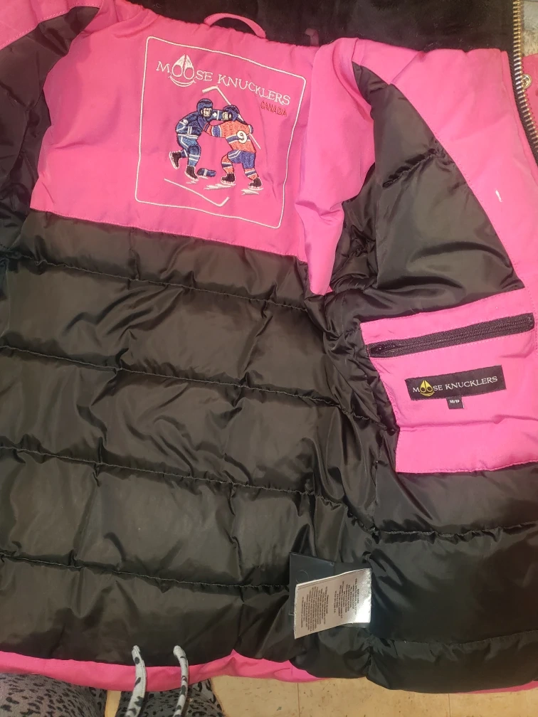60Selling a Moose Knuckles winter jacket in pink. It's a size XS. This jacket is sure to keep you warm during the cold Canadian winters!