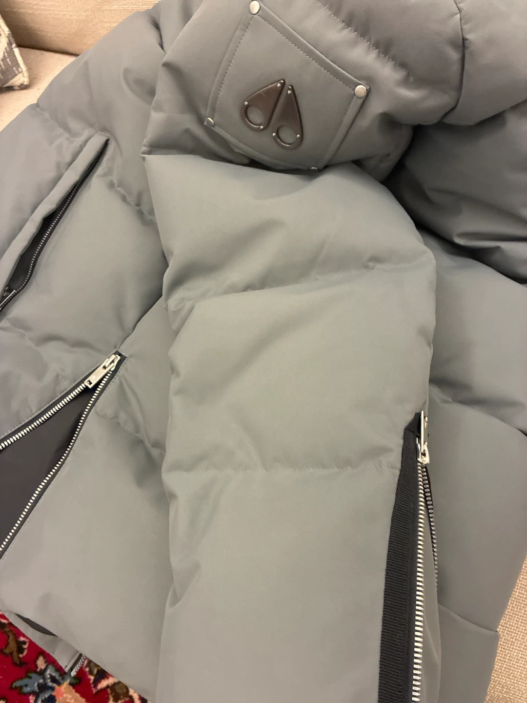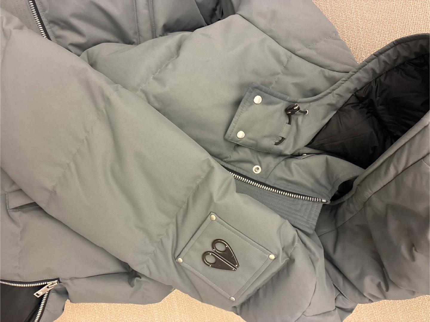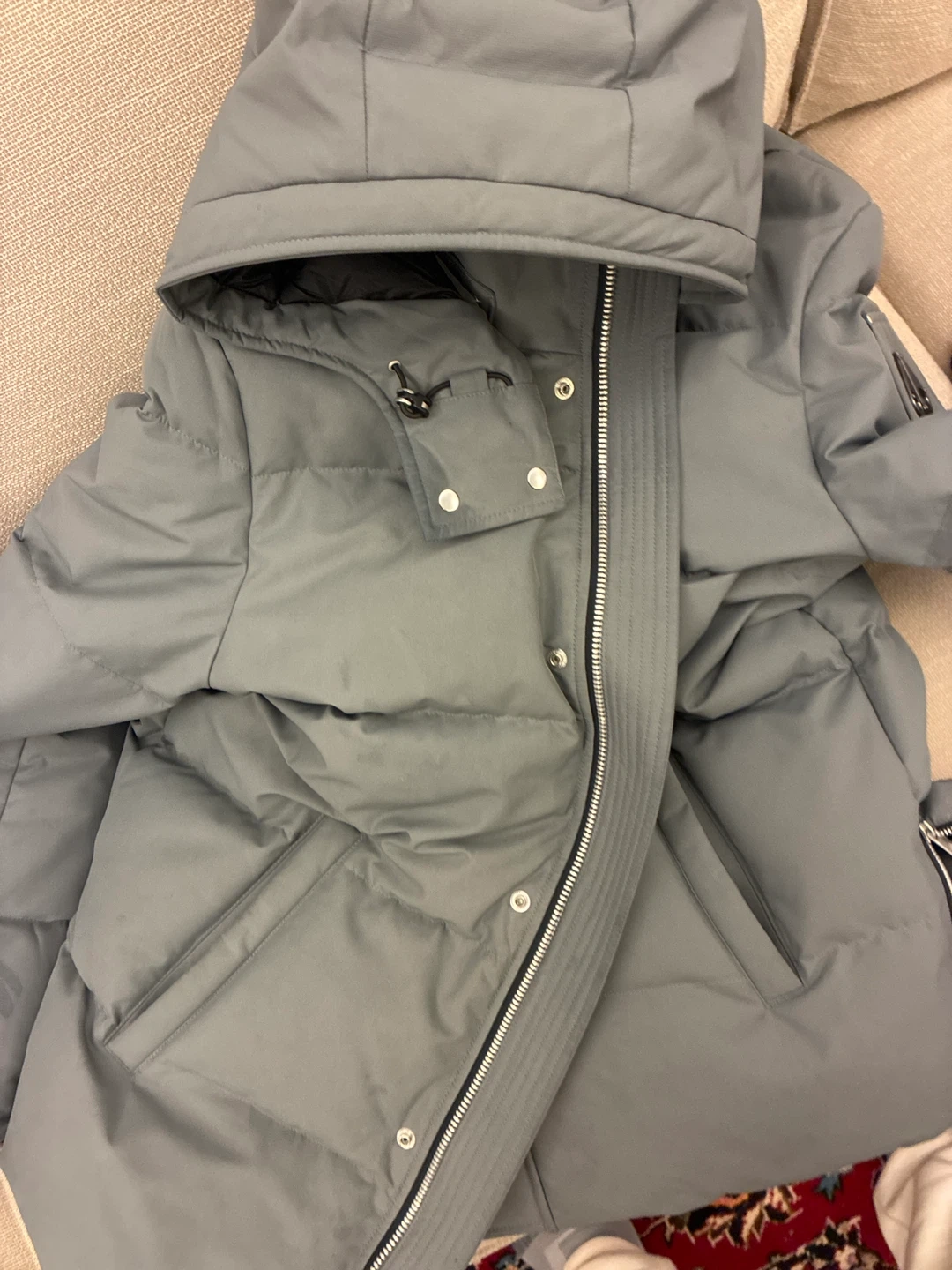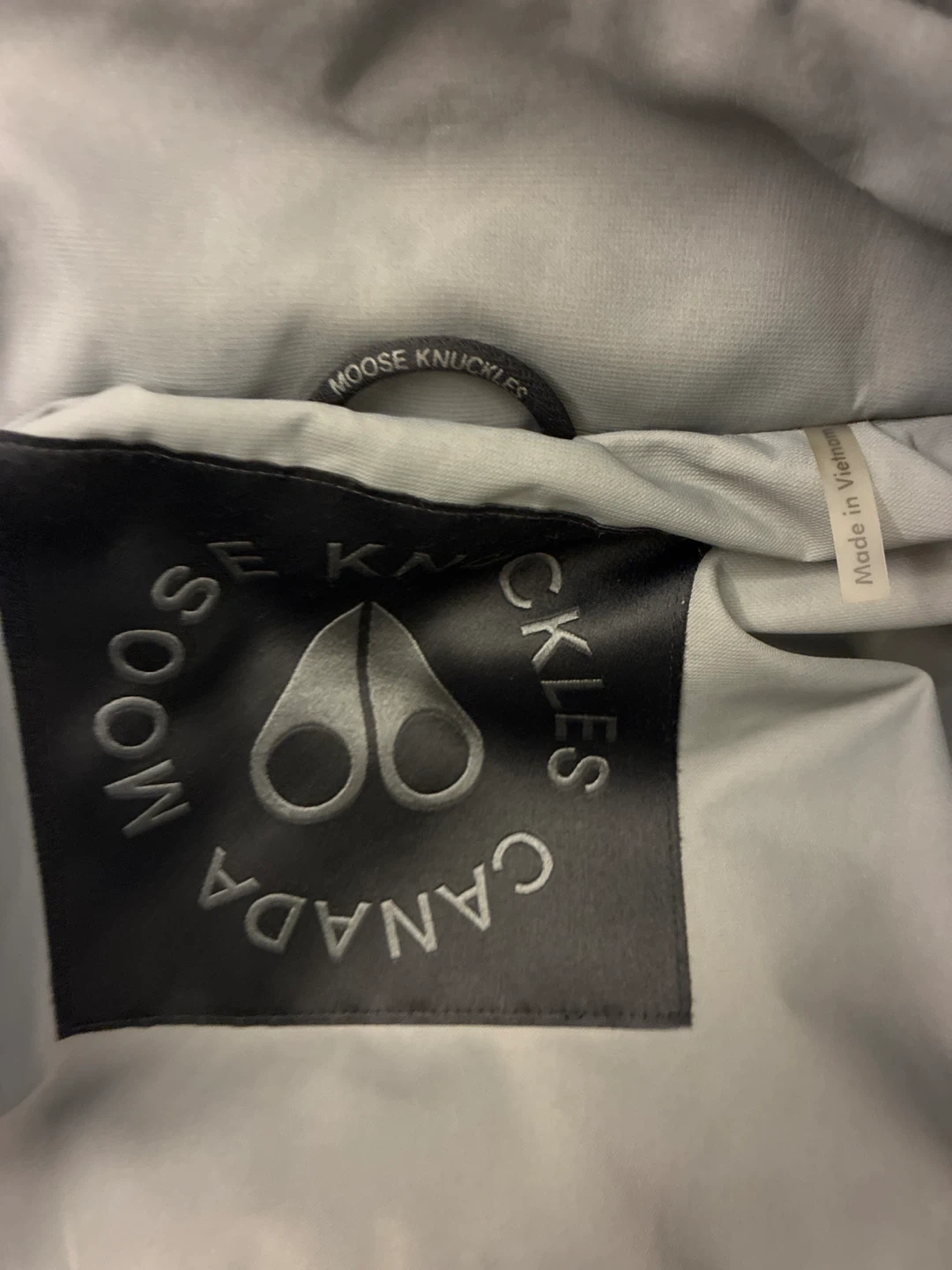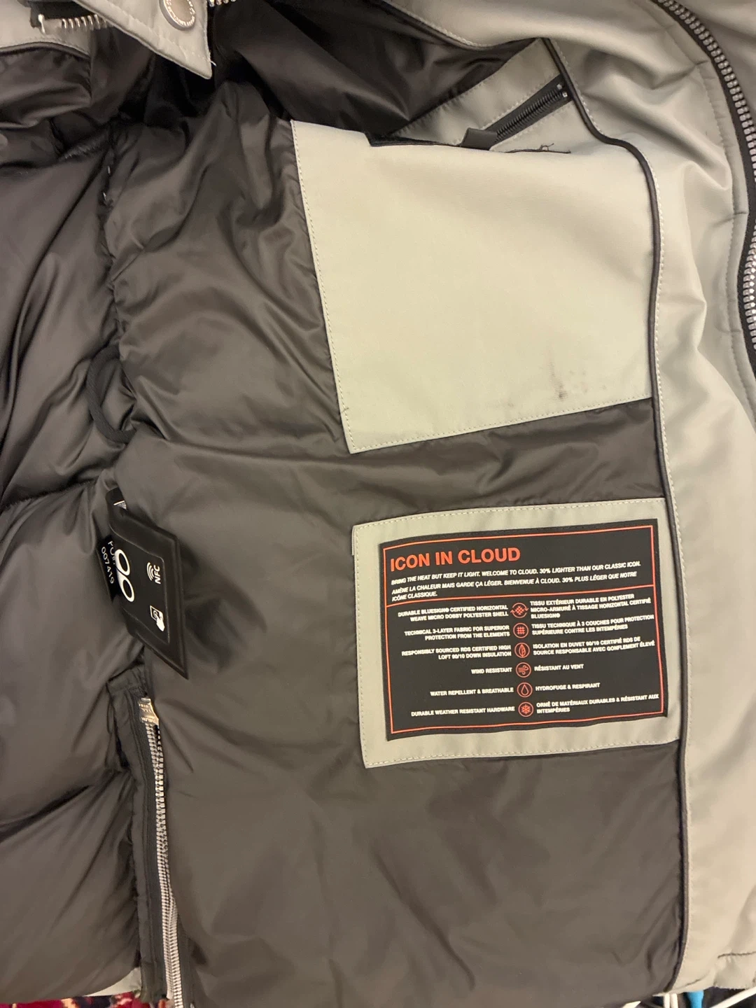 Selling a Moose Knuckles puffer jacket in the 'Icon in Cloud' colour! It's designed to keep you cozy in cold weather. The shell is durable and water-resistant, so you're protected from the elements. Plus, it's breathable and windproof for extra comfort