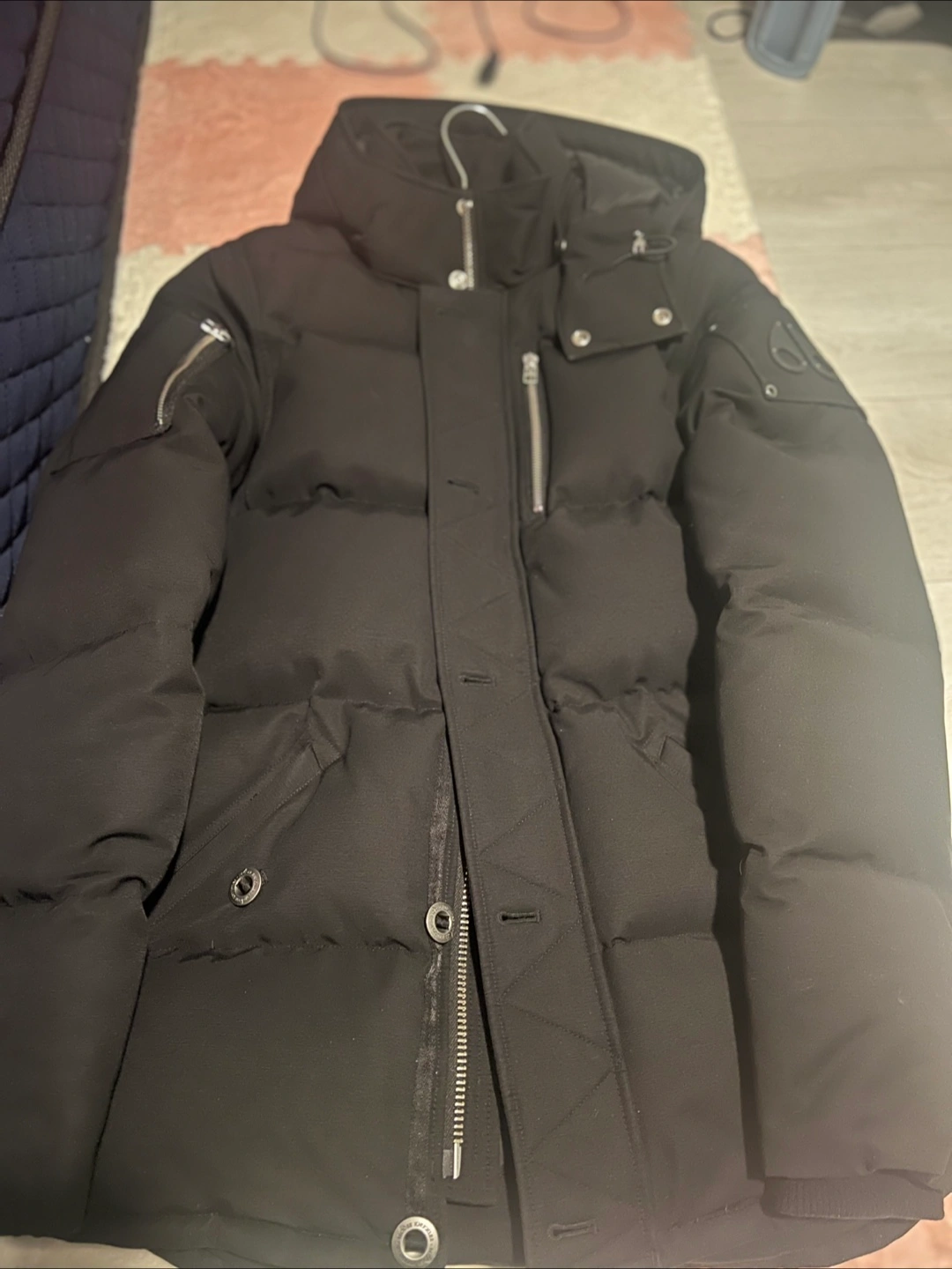 25**NEVER BEEN WORN*** Selling a Moose Knuckles quilted hooded jacket in black. It's in great condition and ready to keep you warm this winter! The jacket features a removable hood and stylish design. Perfect for those cold Canadian days. Reason for selling: it should’ve been a gift, but ended up keeping it for personal reasons. Unisex size small. Fit medium too