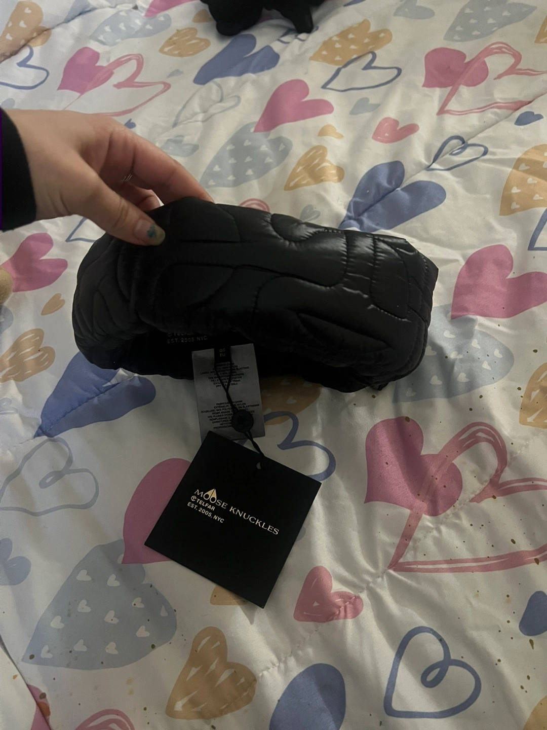 70Selling a stylish black puffer bag from Moose Knuckles! It's in great condition and ready for a new home. Perfect for adding a touch of edgy style to your outfits Brand new preferable for female . Winter head band real
